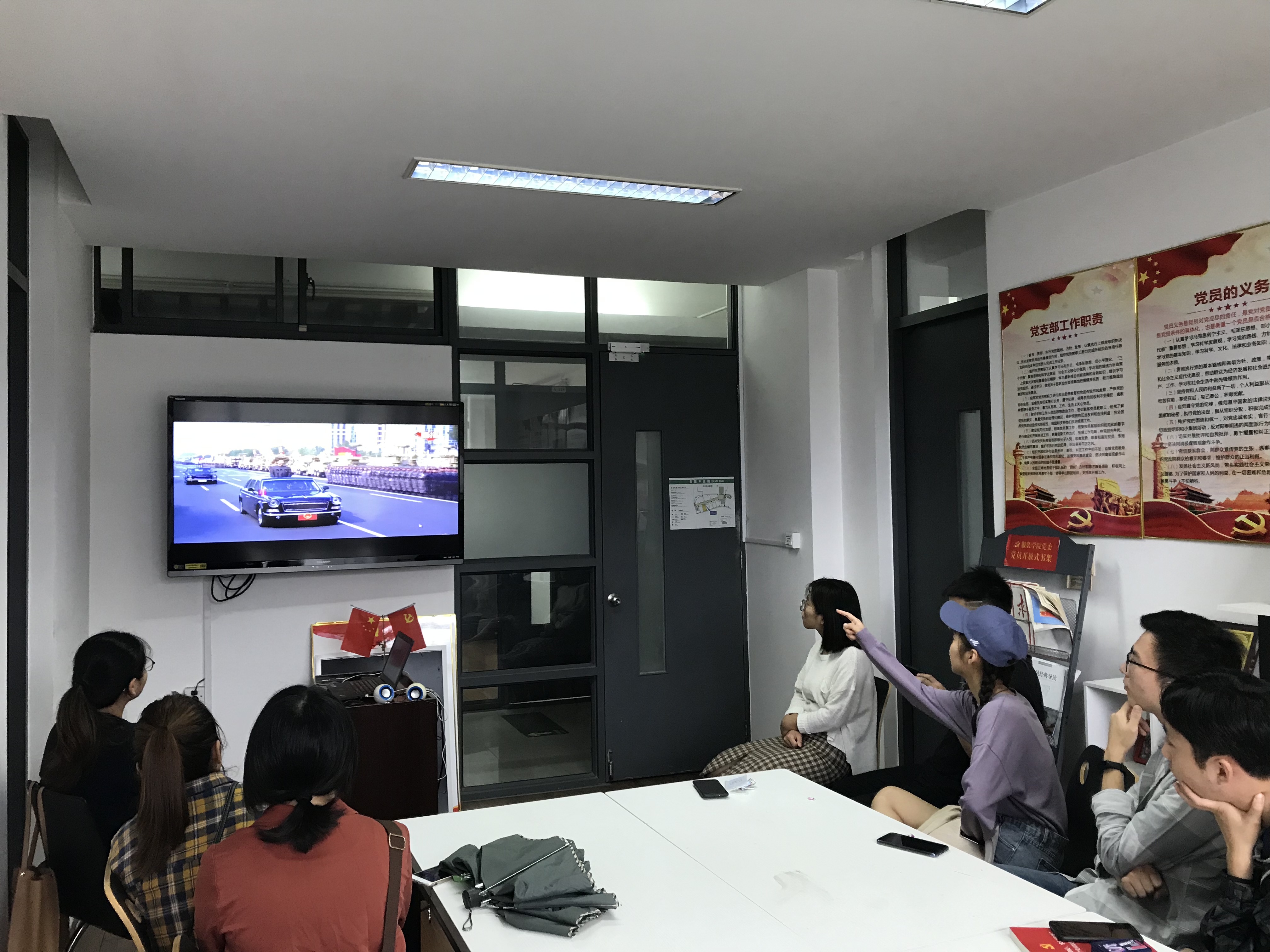 2019年10月1日上午8点,在祖国70周年华诞之际,9728太阳集团服装学院组织留校学生在艺术楼C310观看祖国七十周年大阅兵仪式。