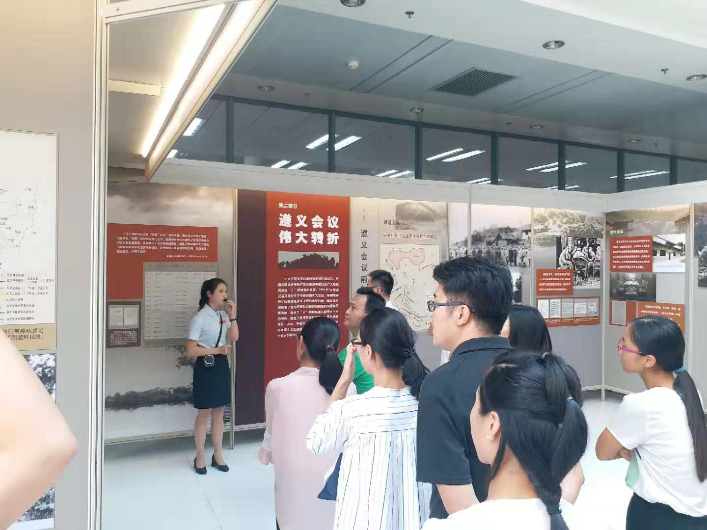 展区主要分为“战略转移开始长征”“遵义会议伟大转折”“转战贵州出奇制胜”“勇往直前走向胜利”“遵义会议精神永存”五个部分。在讲解员的带领讲解下,党员们在一幅幅珍贵的图片资料中进行深刻感悟和学习,感慨红军长征胜利的来之不易。从四渡赤水、巧渡金沙江、飞夺泸定桥、翻越皑皑雪山、穿越茫茫草地,在一个个历史事件中驻足沉思。遵义会议,是我党历史上一个生死攸关的转折点,是中国共产党第一次独立自主地运用马列主义基本原理解决自己的路线、方针和政策的会议。