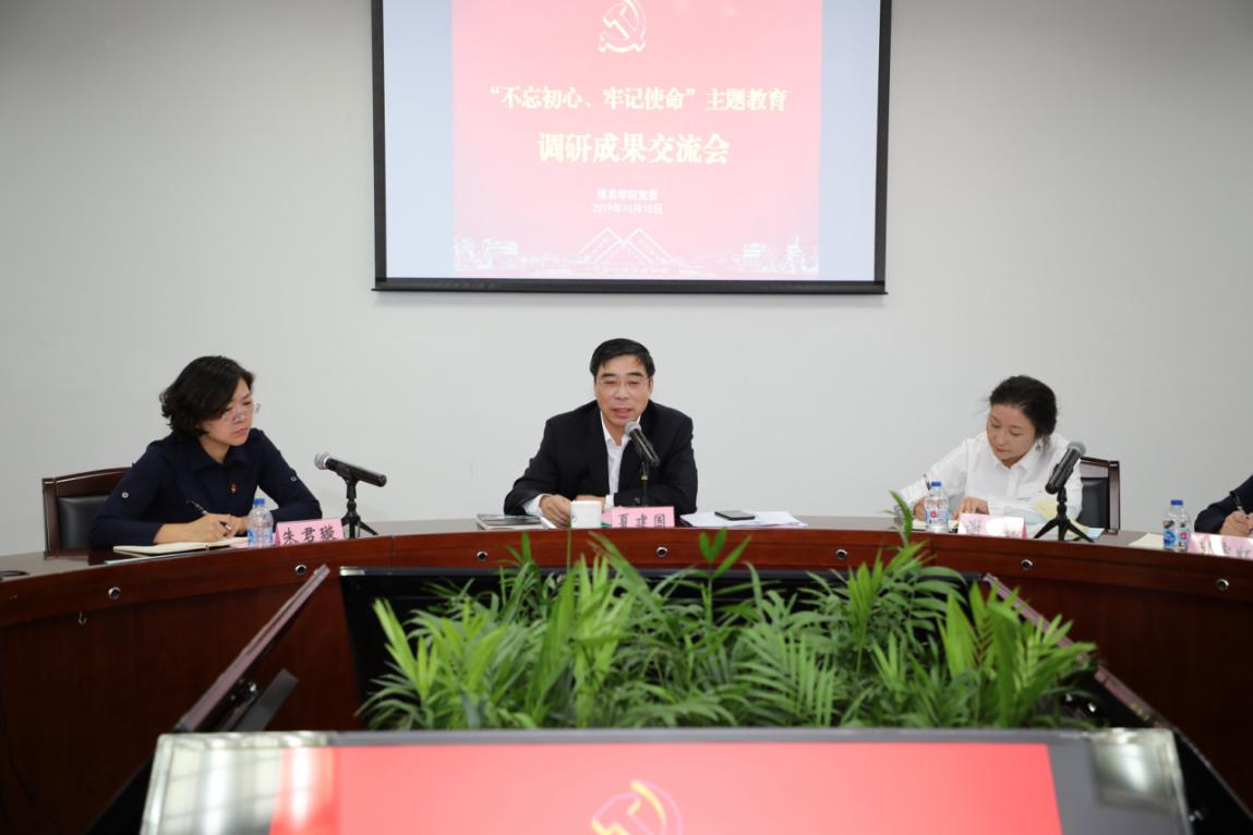 根据学校“不忘初心、牢记使命”主题教育工作安排,在前期深入调查研究的基础上,10月15日下午,服装学院党委在行政楼306召开主题教育调研成果交流会,校党委副书记、校长夏建国出席并指导工作。服装学院全体党政班子成员、党委委员、组织员、支部书记、党员群众代表出席了会议,会议由服装学院党委书记朱君璇主持。