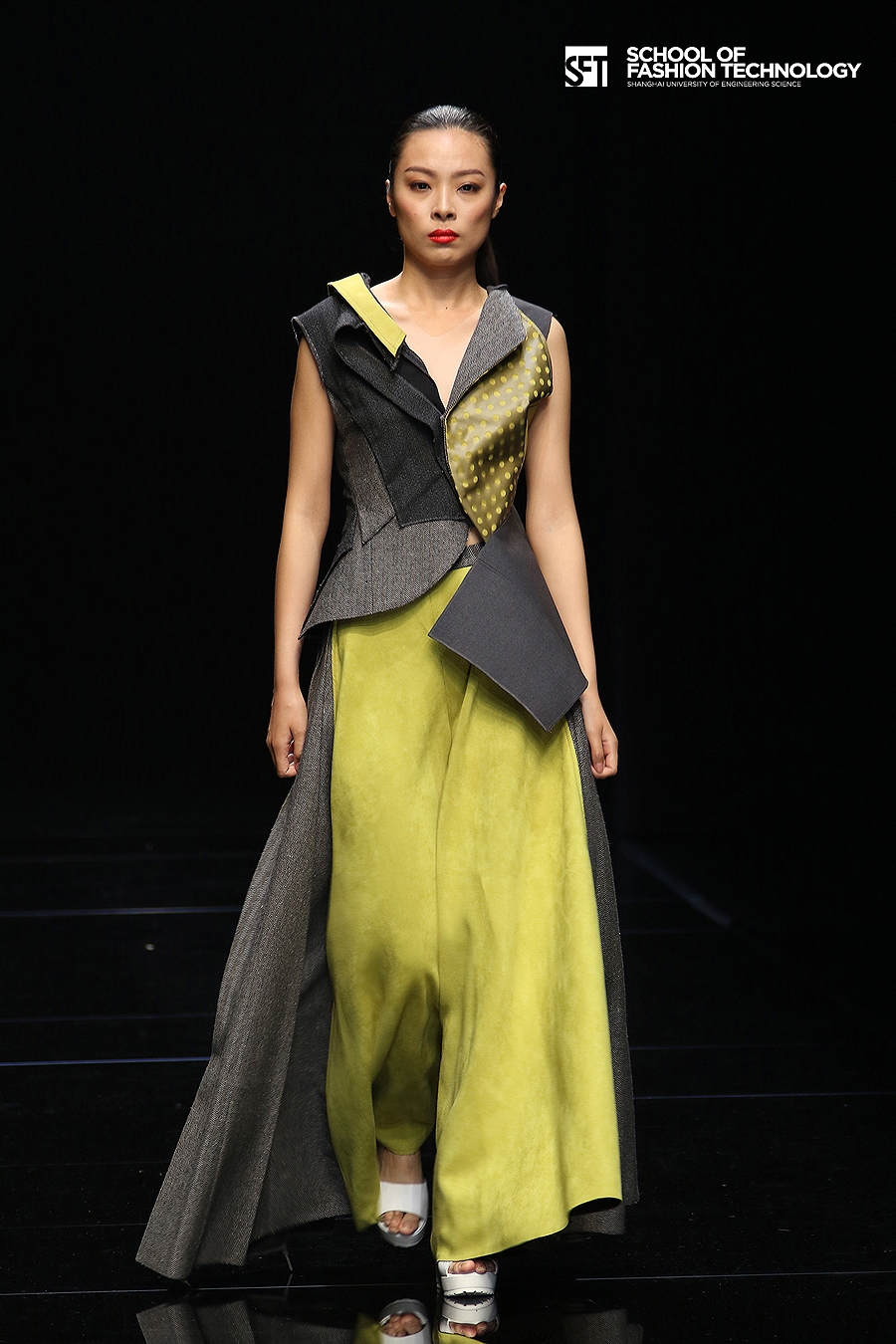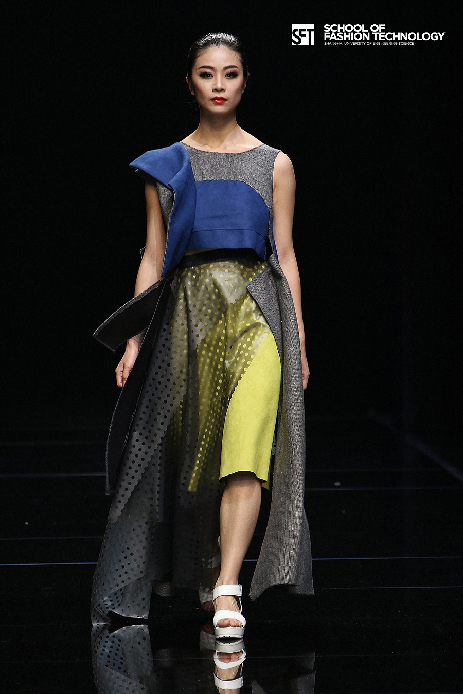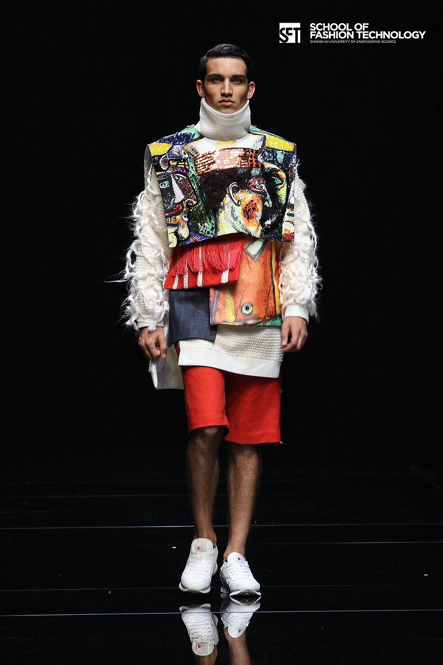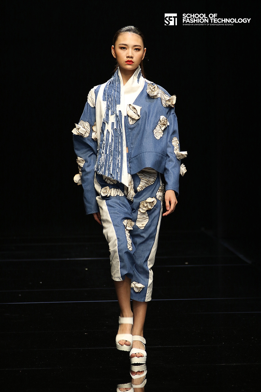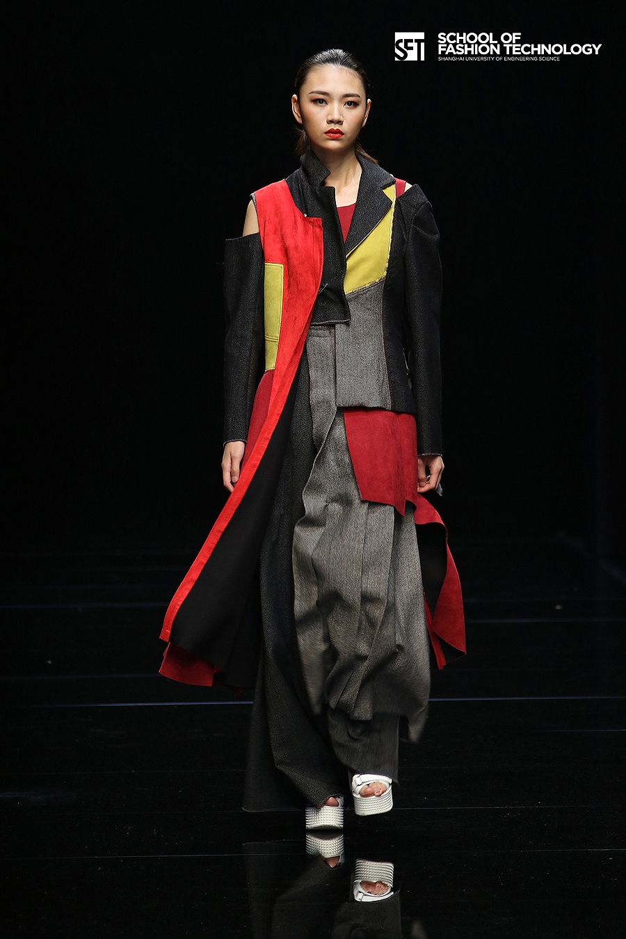 本次发布的作品体现了服装学院师生对设计的充满想象力的理解,大廓型拼接的外套与内衣的混搭极具视觉冲击力,水墨图案的数码打印花面料表现了科技感,体现了成熟的制作水准。