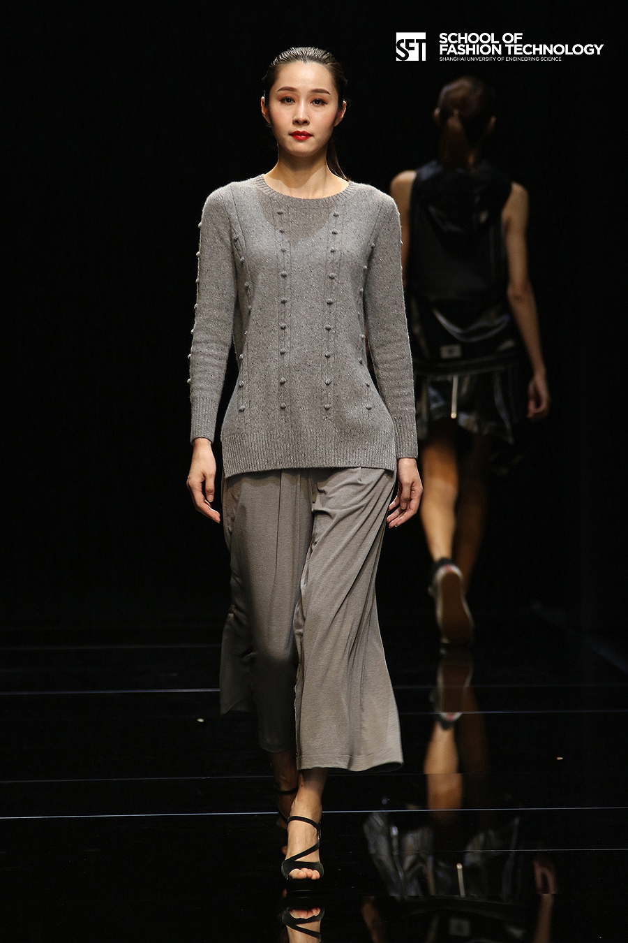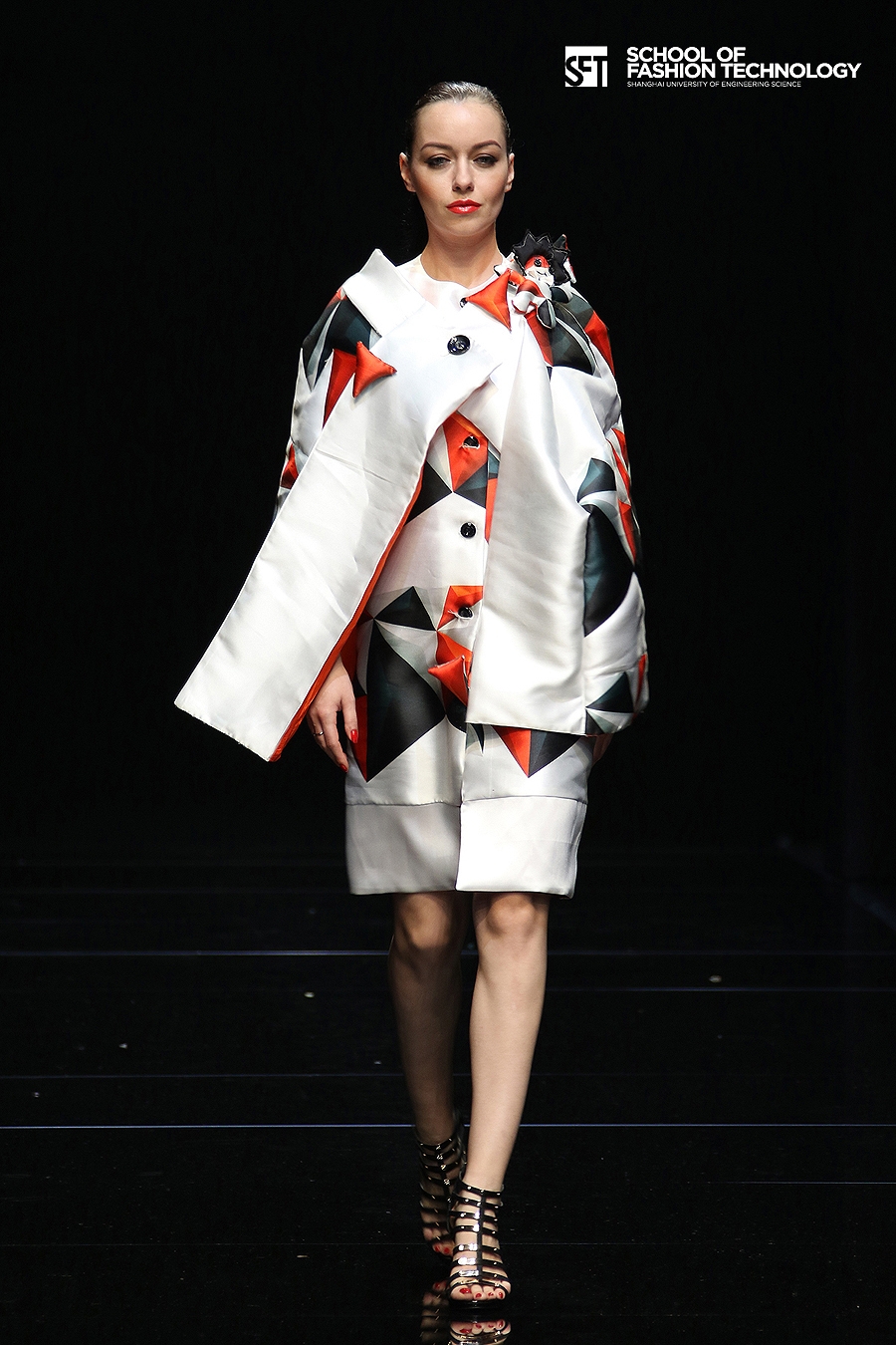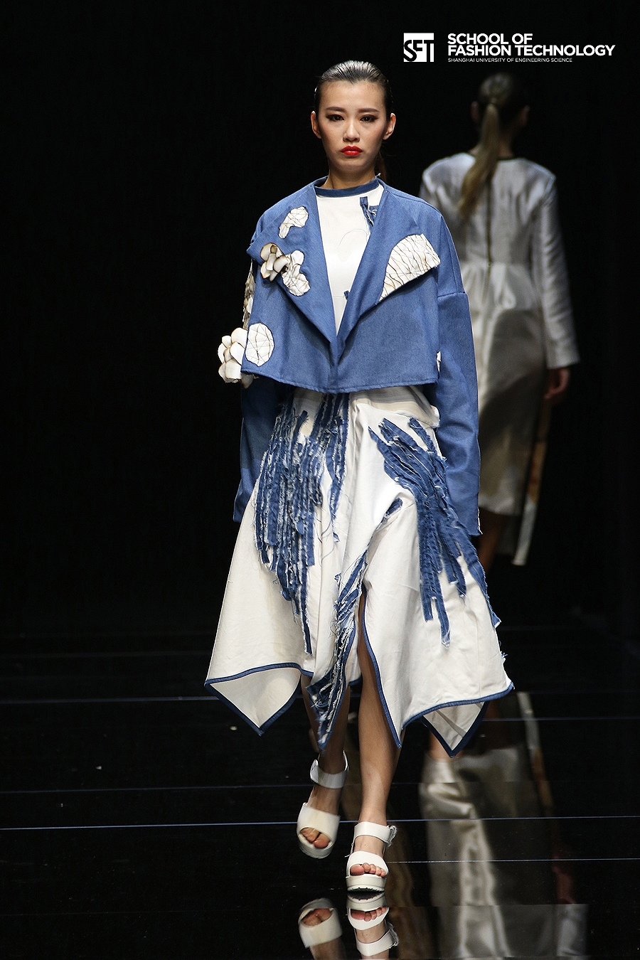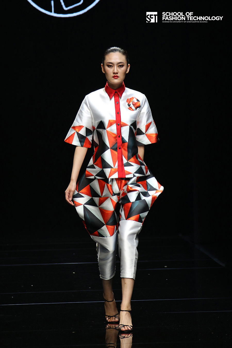 本次发布的作品体现了服装学院师生对设计的充满想象力的理解,大廓型拼接的外套与内衣的混搭极具视觉冲击力,水墨图案的数码打印花面料表现了科技感,体现了成熟的制作水准。