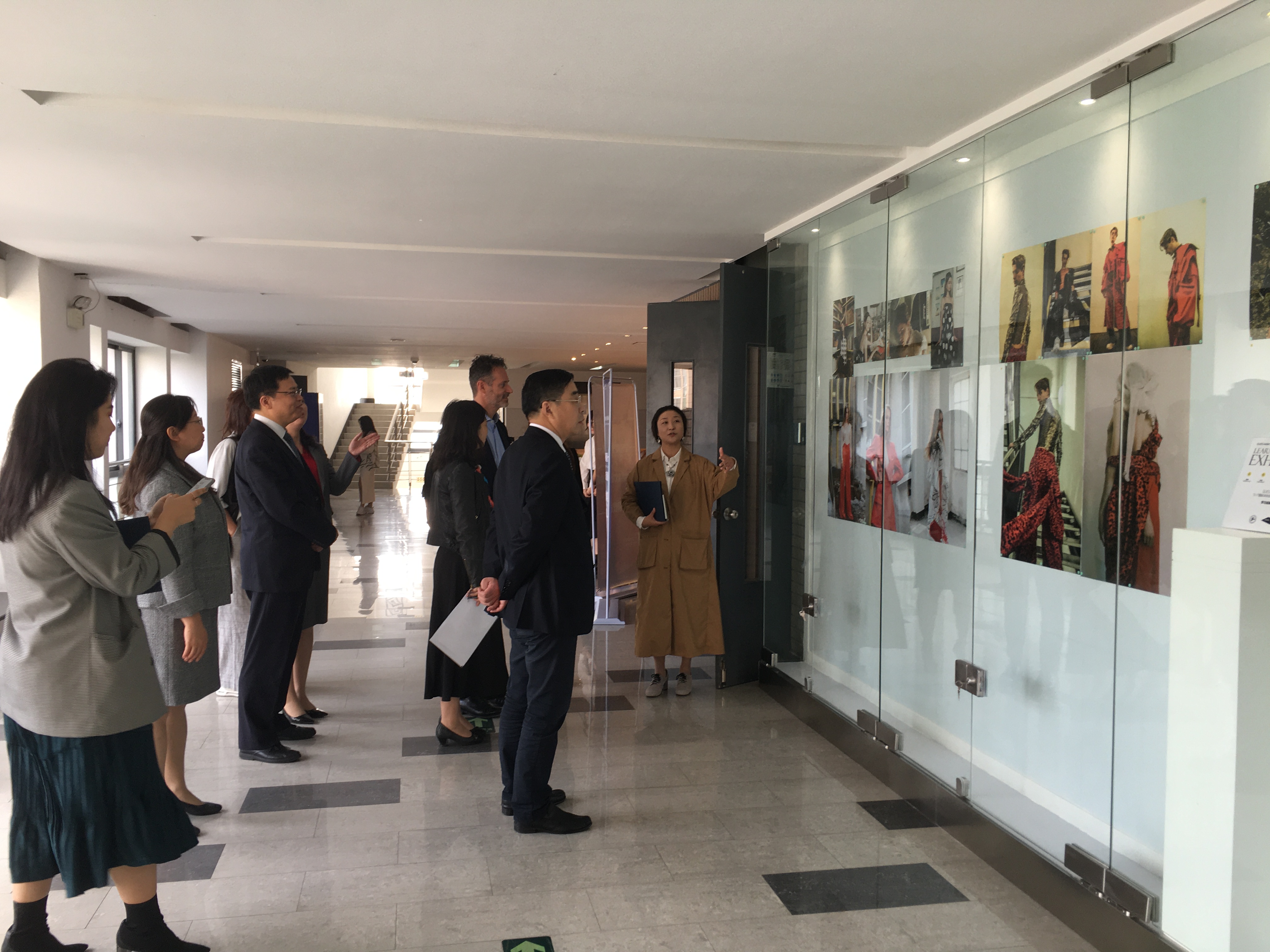 10月上旬,我们落实整改了三楼表演厅外围的展示墙,以期能更好的展示学生设计作品,宣传学科文化,艺术交流。10月25日的中意文化日,通过展示墙,非常好的向意大利米兰新美术学院董事及教师展示了两校本科双学位7位毕业生的设计图册及成衣作品,获得了意方的高度评价。