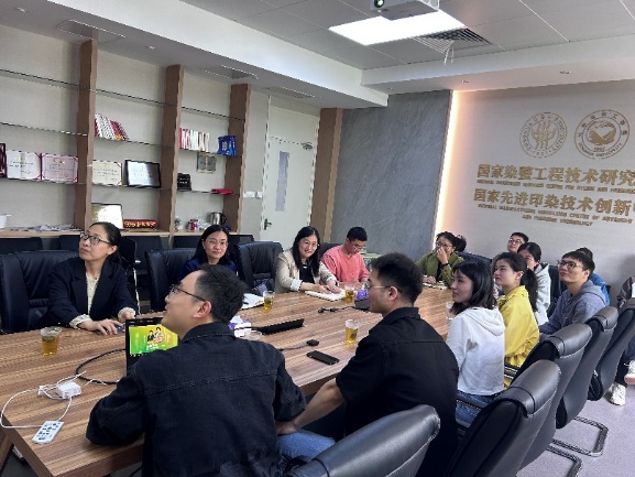 会后,在东华大学染整学科教工支部委员、纺化系副主任葛凤燕的带领下,对相关专业实验室等进行了参观学习。她强调,两校的研究生支部要以此次联学为开端,以党建活动为平台,以科研交流为方向,在学术和专业知识方面的交流互动中不断深入了解,共同挖掘党建工作与专业发展相结合的新途径,积极探讨未来共建的方式和目标。学院副院长徐丽慧表示,东华大学与我院在纺织染整专业方向上一脉相承,我们要以此次主题教育为契机,通过党支部共建联建实现互相促进,取长补短,为研究生搭建科研交流平台,促进党的建设和研究生培养工作深度融合。