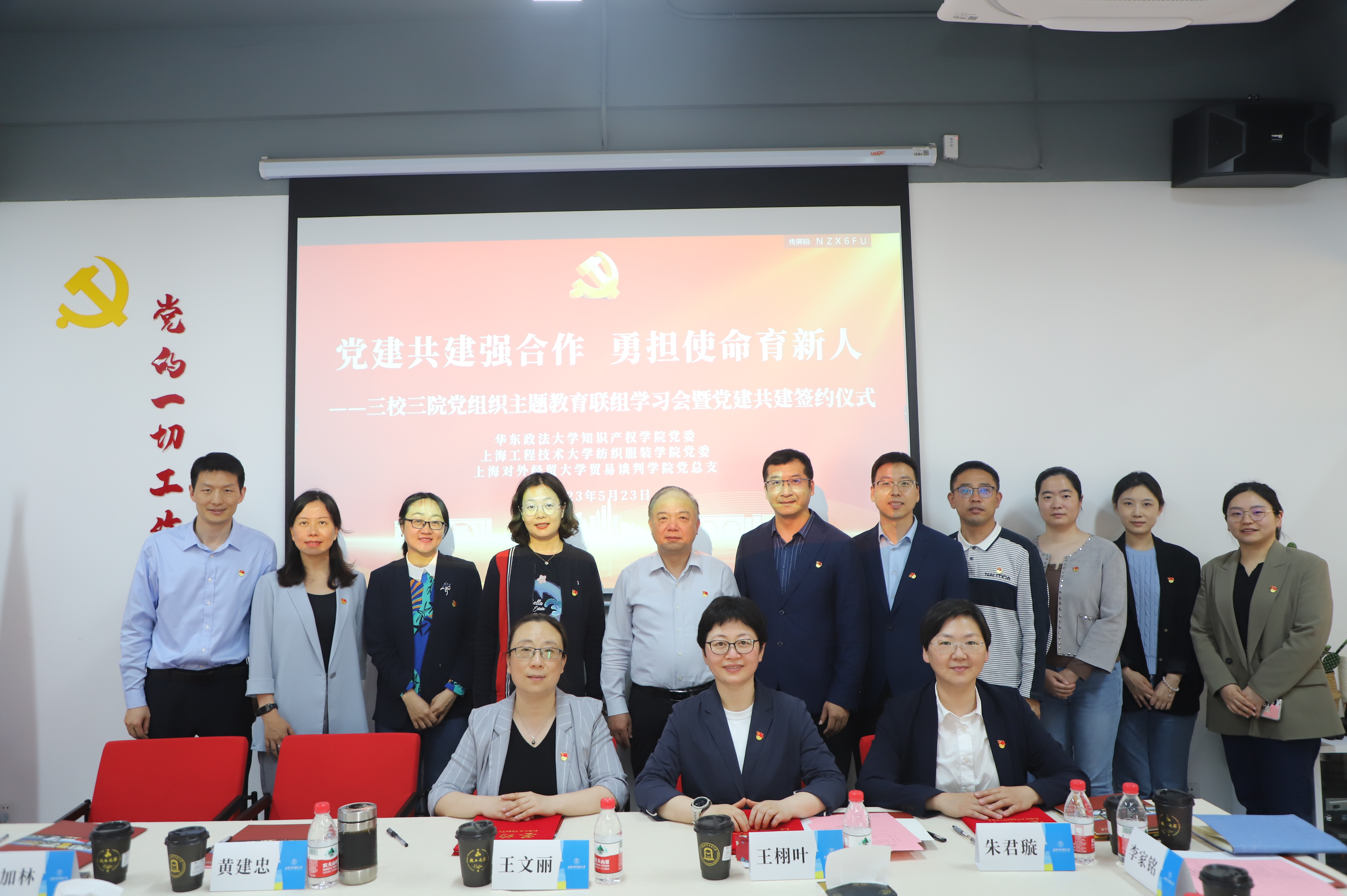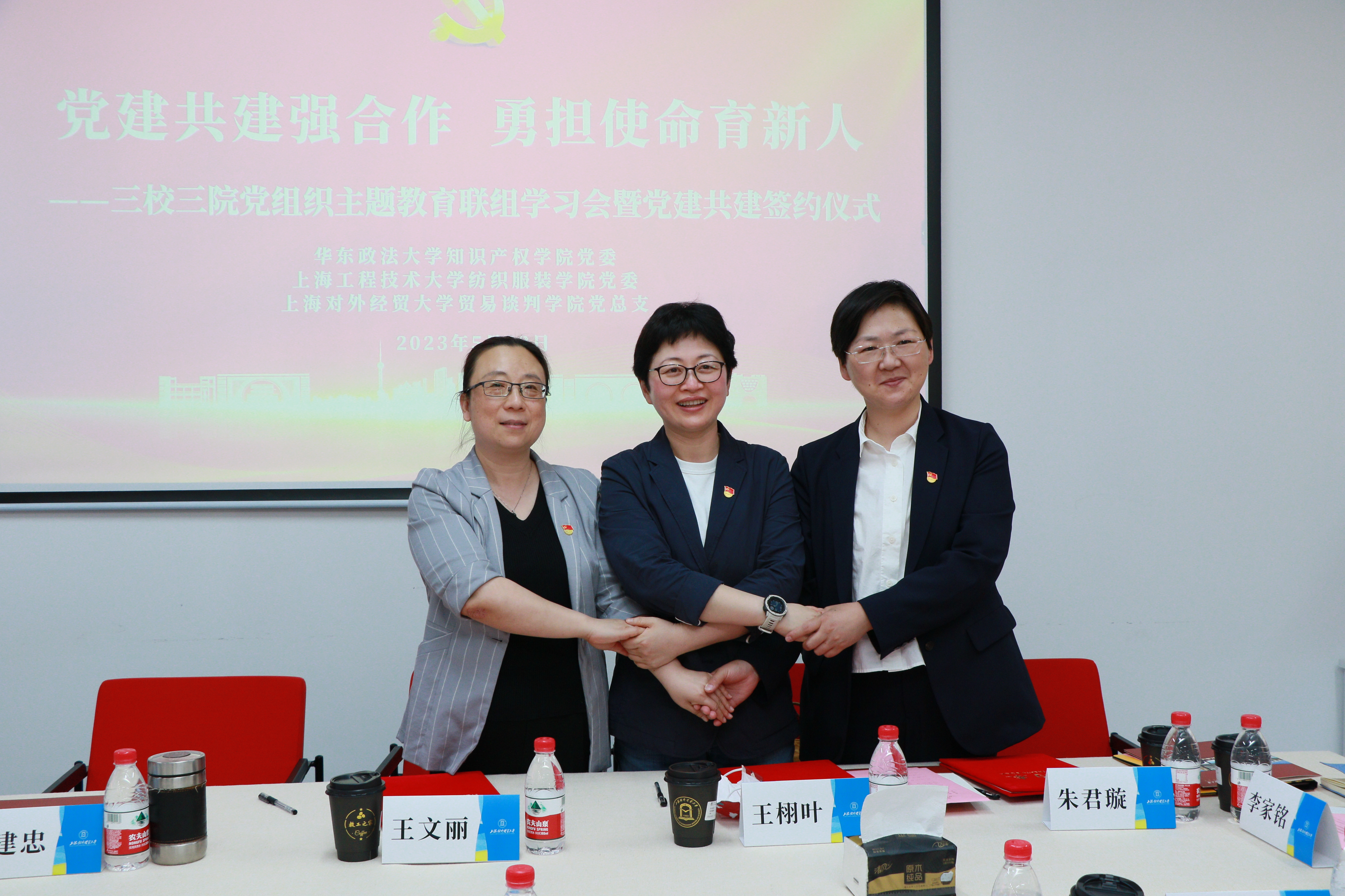 为深入学习贯彻习近平新时代中国特色社会主义思想,5月23日下午,太阳成集团tyc9728党委与上海对外经贸大学贸易谈判学院党总支、华东政法大学知识产权学院党委开展联组学习,并就三方关心的问题进行了深入研讨。上海对外经贸大学党委常委、组织部部长陈加林,世界贸易组织讲席(中国)研究院院长、WTO亚太培训中心主任黄建忠,太阳成集团tyc9728党委书记朱君璇,上海对外经贸大学贸易谈判学院党总支书记王文丽,华东政法大学知识产权学院党委书记王栩叶,三学院党委副书记、党总支副书记和党支部书记参加了本次活动。活动在上海对外经贸大学松江校区党建服务中心举行,由王文丽主持。