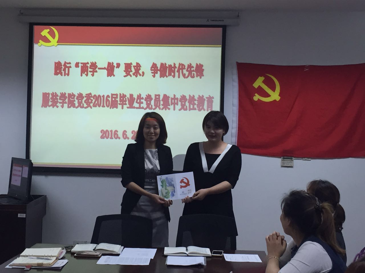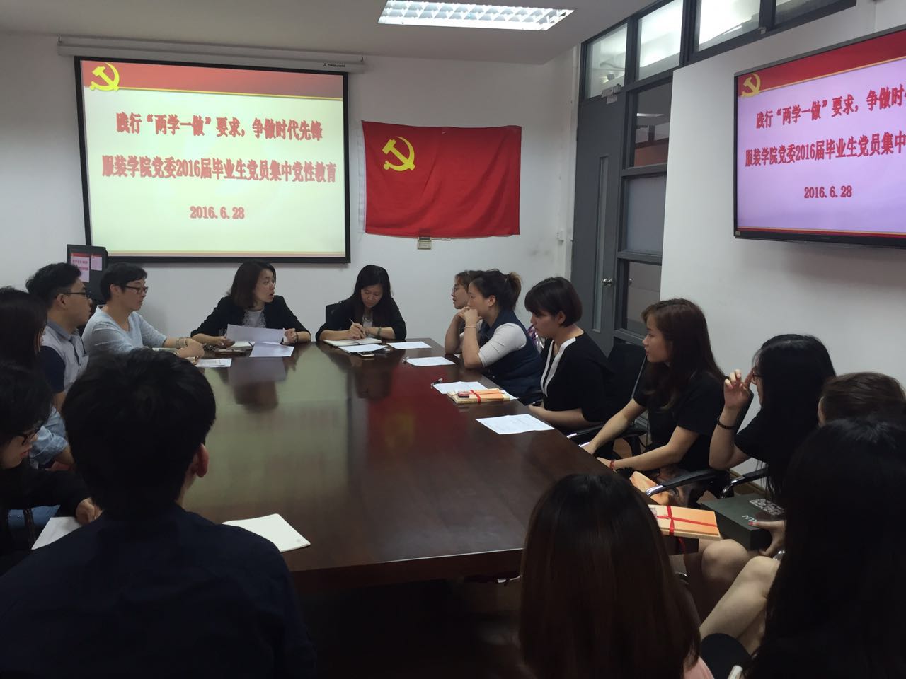为加强毕业生党员的党性修养、思想觉悟以及社会责任感,结合“两学一做”,服装学院党委于6月28日下午15:00在艺术楼A218开展以“践行“两学一做”要求,争做时代先锋”为主题的2016届毕业生党员集中教育。出席会议的有服装学院党委书记袁蓉、组织员郑艳、学生第一党支部书记陈小琼、学生第二党支部书记王安浩以及全体毕业生党员。