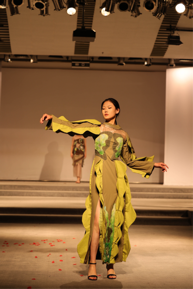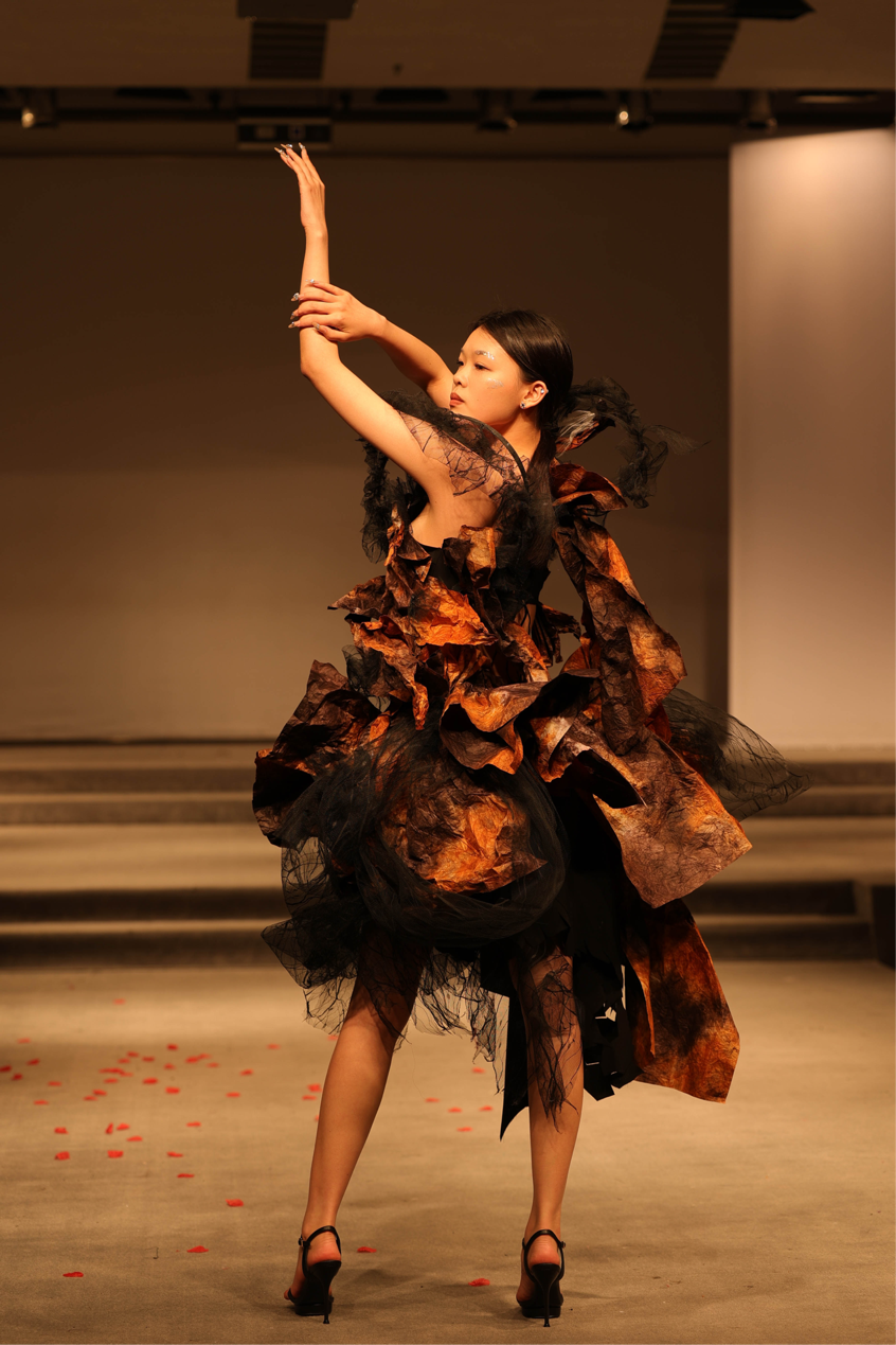 冬去春来,一切都在苏醒、涌动,“AWAKE——唤醒·真我”旨在表达万物复苏的生机和程园学子绽放自我的朝气,在设计构思与综合材料契合度之上,设计和表演都不再被定义。在专业教师团队的带领下,服装与服饰设计专业学生在综合材料设计创意、创新、制作能力上,有不少提升。