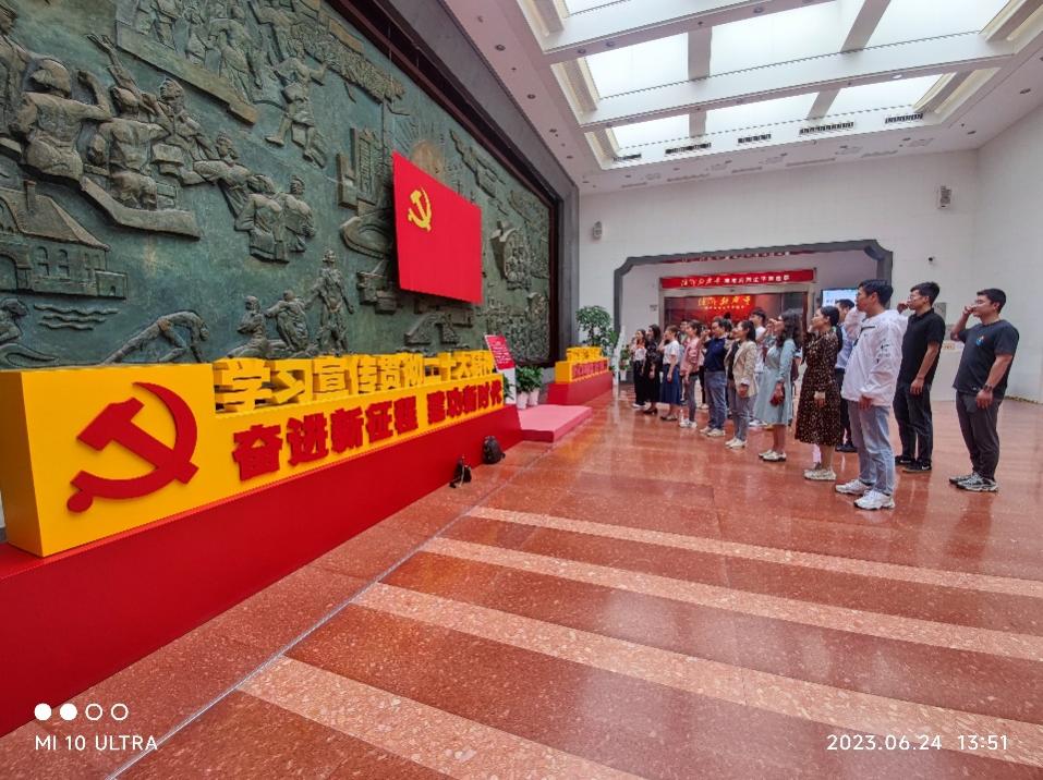 首先,老师们在苏州革命博物馆大厅的党旗下重温了入党誓词,继而在讲解员的带领下参观了序厅和“近代苏州社会”、“大革命时期”、“土地革命战争时期”、“抗日战争时期”、“解放战争时期”等六个展厅,听取并学习了苏州革命的峥嵘岁月,一幕幕的辉煌展示引导着老师们深刻认识到中国共产党人不懈奋斗的坚定足迹,切身感受了中国特色社会主义伟大成就。