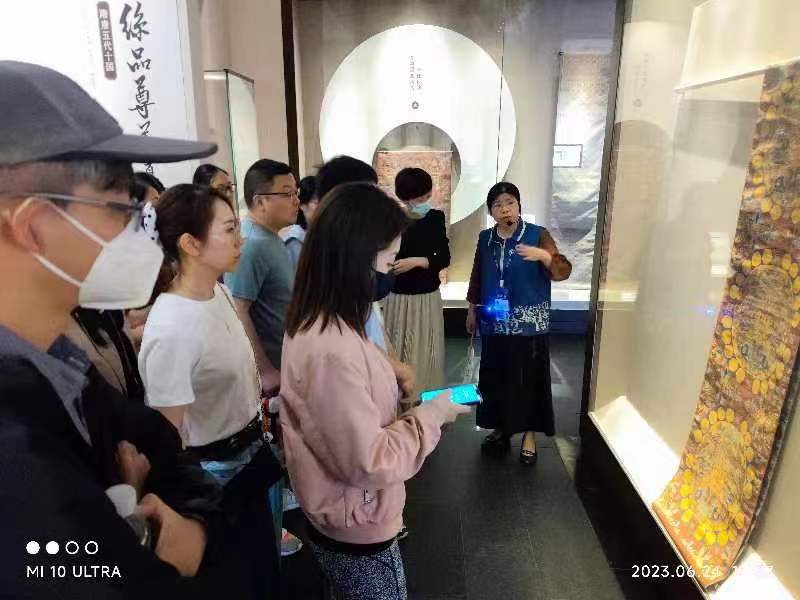 自古丝绸之路开辟至今,丝绸逐渐成为中华文明的重要代表符号,作为苏州爱国主义教育基地的苏州丝绸博物馆设有历史馆、现代馆、钱小萍丝绸文化艺术馆等展区,老师们在解说员的带领下从古代厅、蚕桑居、织染坊、贡织院、民国街和非遗厅,一路参观到现代馆,见证了从养蚕到织丝,从染色到成衣的过程,感受源远流长的丝绸历史,精湛的丝织技艺,惊叹于古人的勤劳智慧,作为纺织人更是对传承丝绸文化,锦绣中华,衣被天下的使命感和责任感有了更深的认识。