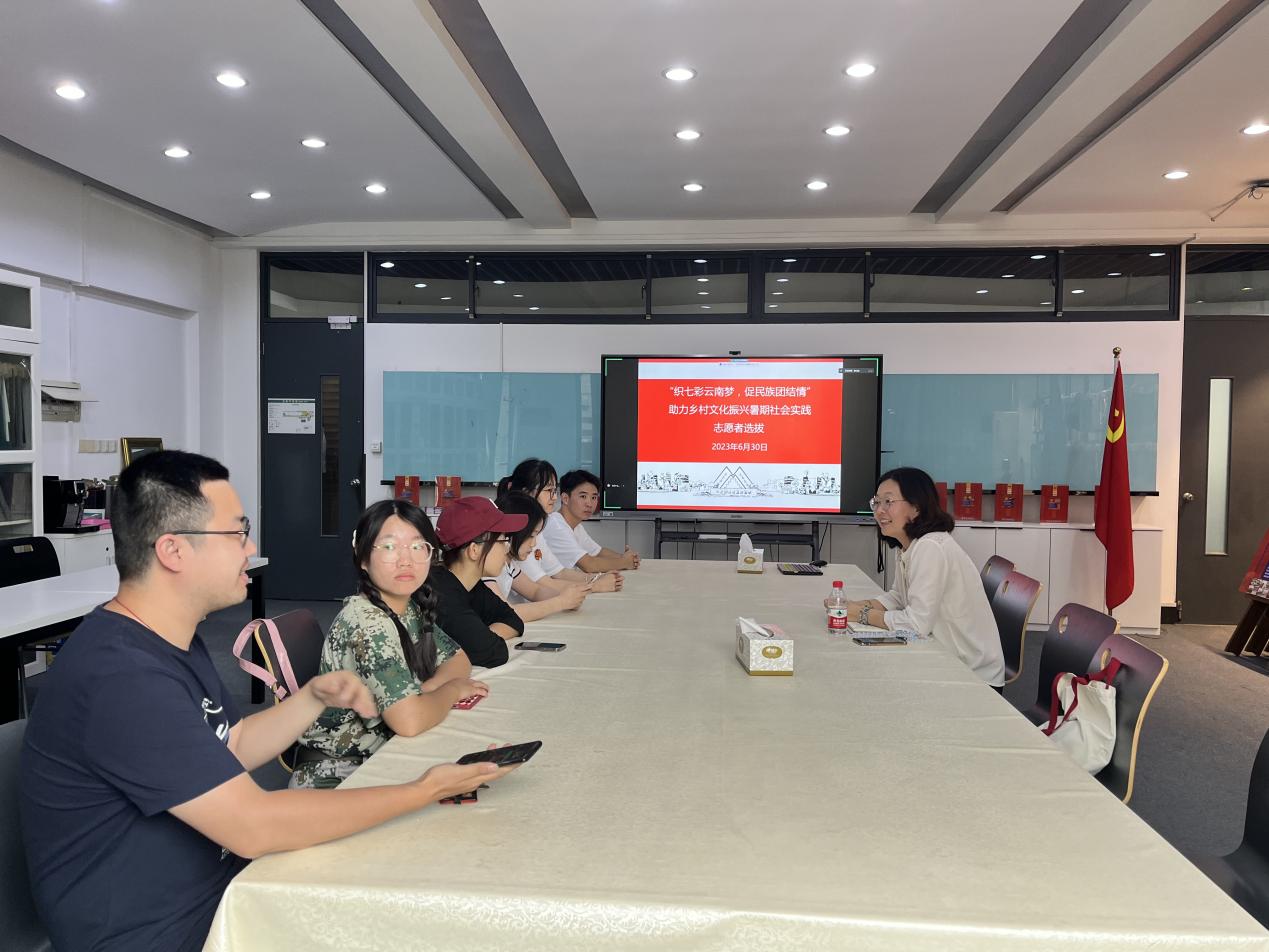 实践活动前期,学院对报名参加实践项目的同学进行选拔面试。太阳成集团tyc9728党委副书记谢志霞出席了本次选拔面试活动,通过交流对这些同学的个人优势和参加动机进一步了解。六个项目成员来自不同专业,不同年级,有党员、有团学骨干,他们都有着不同的特长优势。同学们分工明确,发挥各自作用,将在此次暑期社会实践活动中贡献自己的一份力量。
