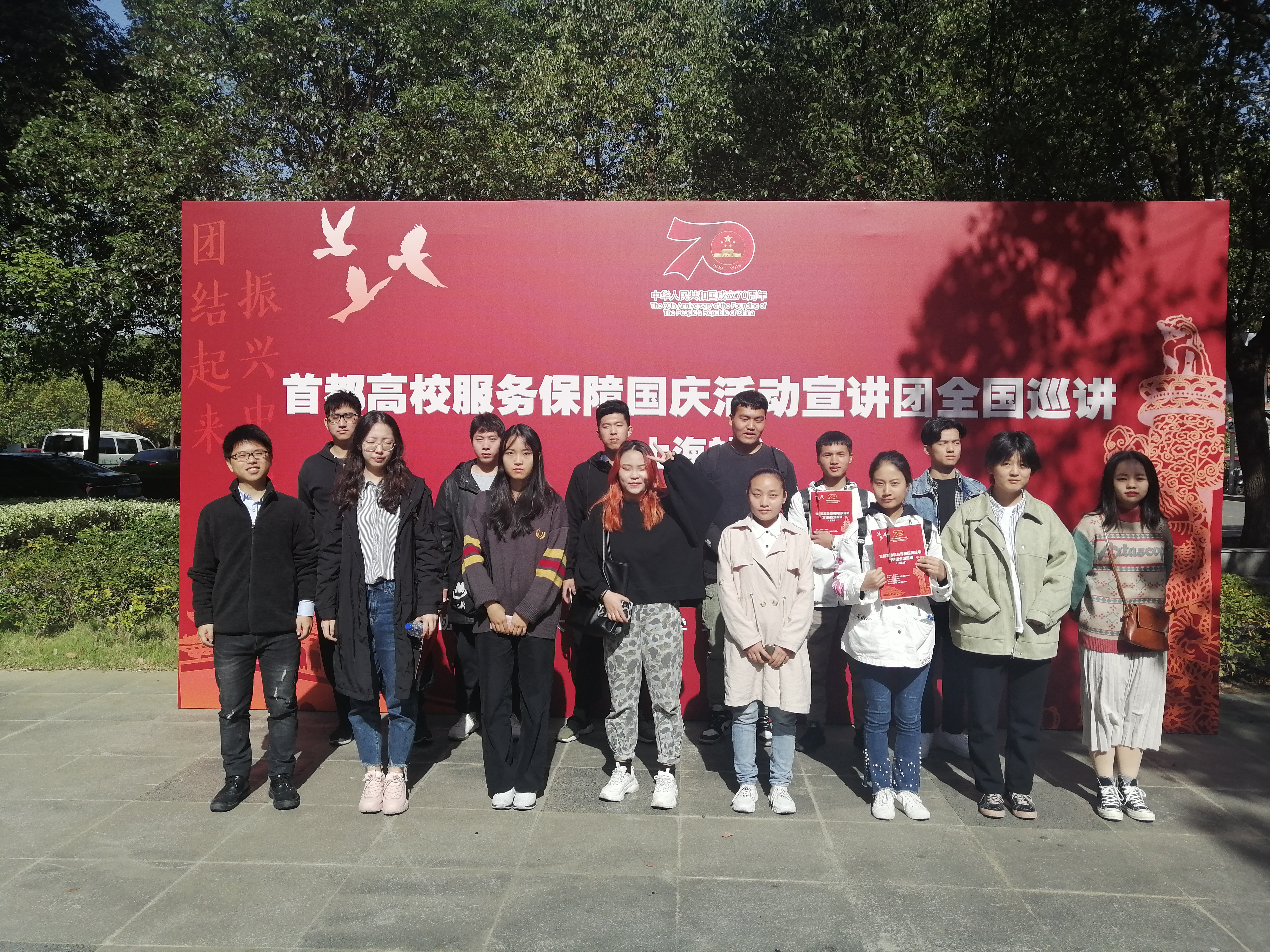 2019年11月14日上午,服装学院师生一行20余人,在华东政法大学(松江校区)明镜楼尚法厅,集中观摩首都高校服务保障国庆活动宣讲团全国巡讲(上海站):由北京大学宣讲团所作 “团结起来、振兴中华”的主题报告。