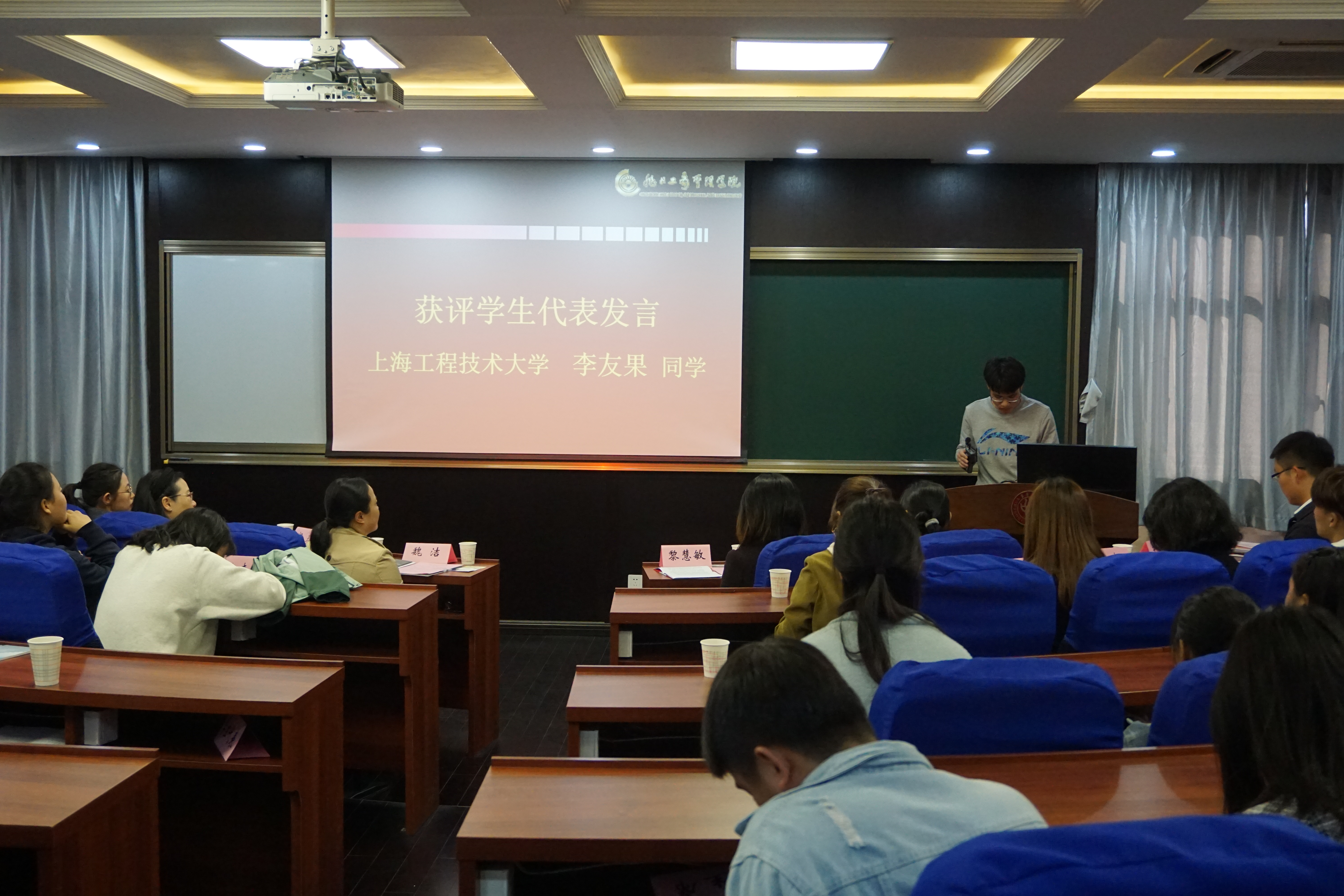 助学金发放仪式后,我校服装学院李友果同学代表全体受助学生做了真挚感人的发言,对学校和真维斯公司的资助、以及社会上的关爱表达了最真挚的感谢,并表示要树立自强自立的信心,努力取得优异的学习成绩。