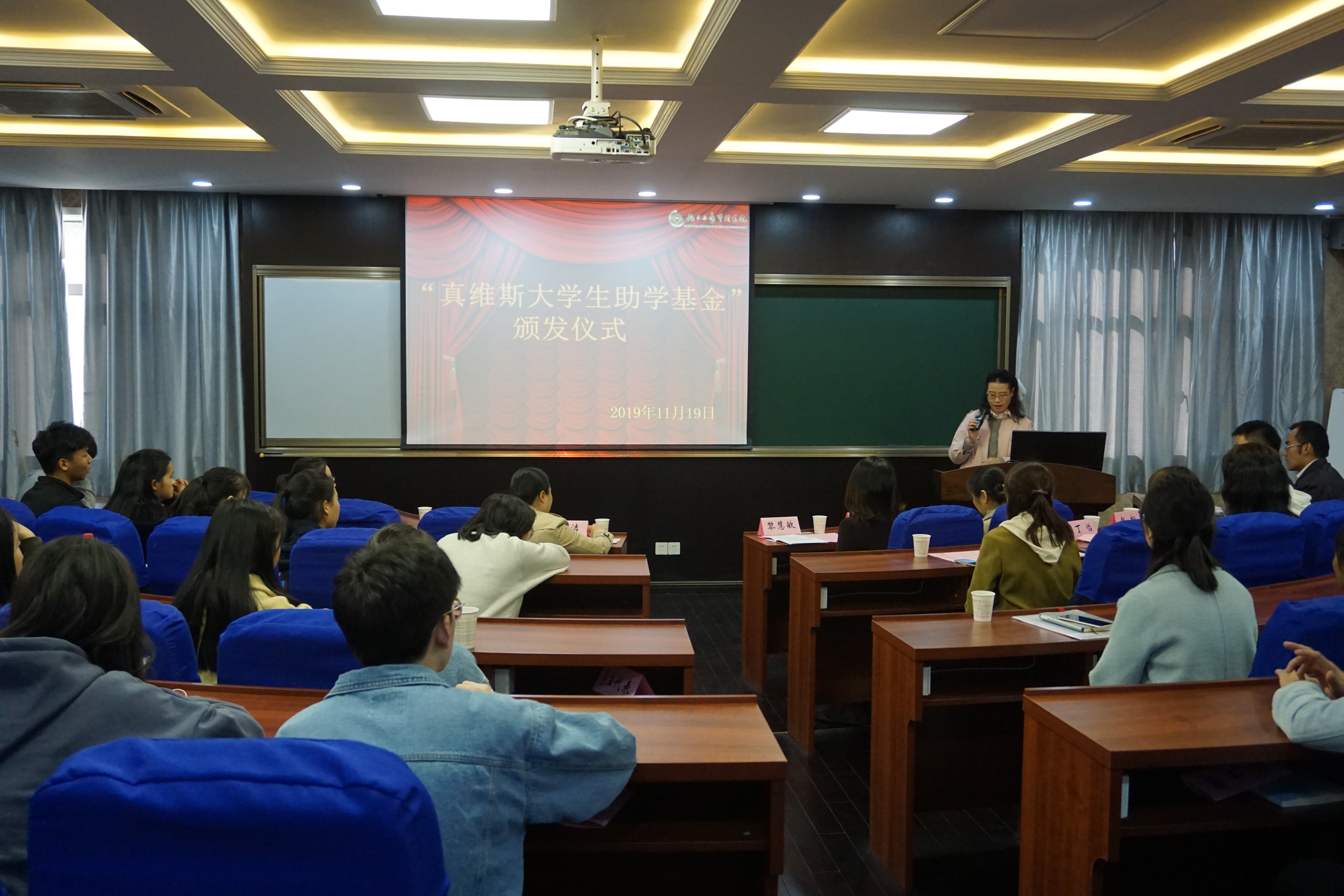 2019年11月19日下午,“真维斯大学生助学基金”颁发仪式在东华大学管理楼328会议室举行。上海市青少年发展基金会(以下简称“市青基会”)秘书长、希望工程办公室主任魏洁,上海真维斯服饰有限公司(以下简称“真维斯公司”)副总经理黎慧敏、行政经理李莺,东华大学学生处副处长宋珺,旭日工商管理学院党委书记林文伟、党委副书记丁怡,我校服装学院党委副书记张漪、辅导员赵桐及受助学生代表出席颁发仪式。