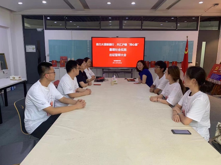 On July 7th, the Party Committee of the Textile and Clothing College held a summer social practice oath ceremony titled "Assisting the Great Love of Xinjiang and Jointly Drawing the ' concentric circles ' of Shanghai and Xinjiang" at the C210 Art Building. Zhu Junxuan, Secretary of the Party Committee of the Textile and Clothing College, Xie Zhixia, Deputy Secretary of the Party Committee, Xin Yuan, and Liang Shuaitong, the team leader, as well as all the students who went on the expedition, participated. The meeting was chaired by Professor Xie Zhixia, Deputy Secretary of the Party Committee.