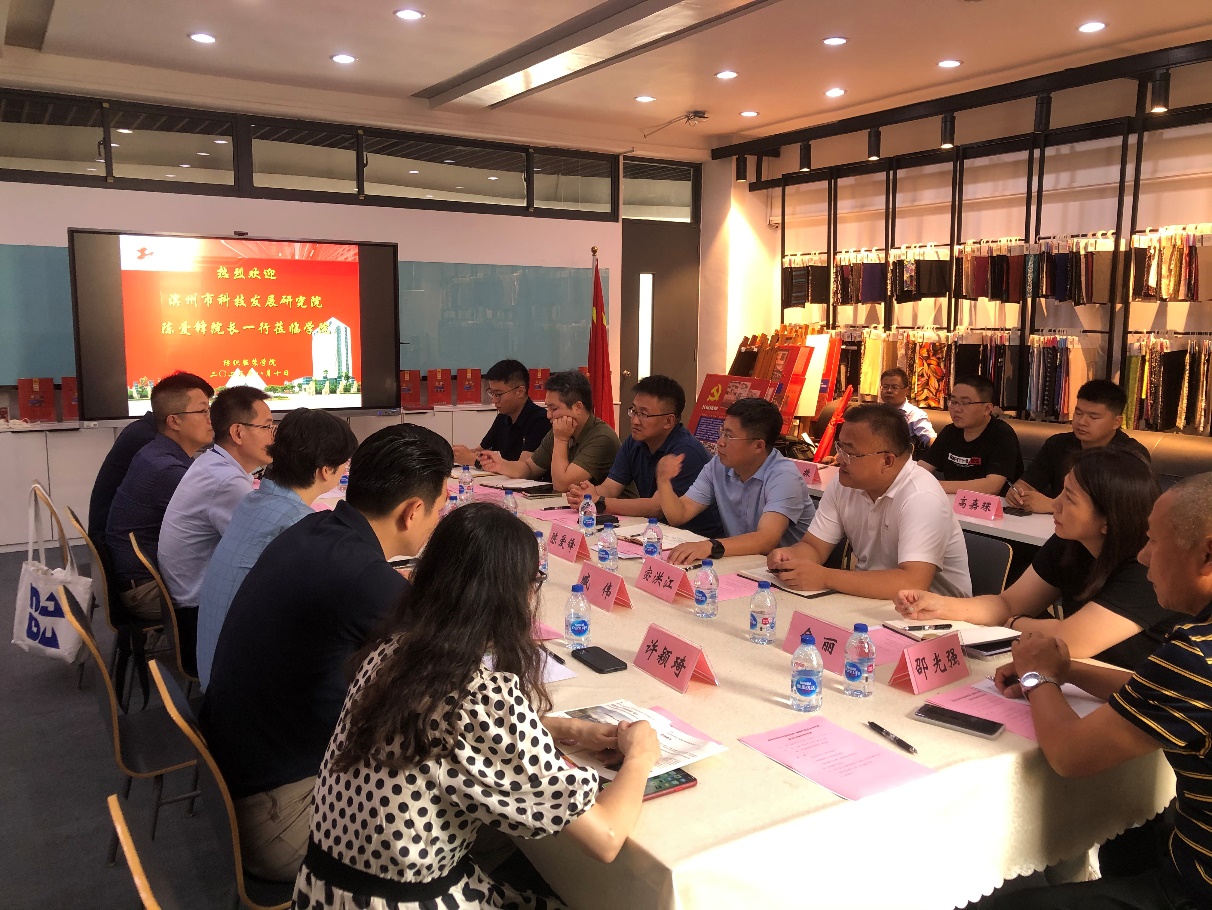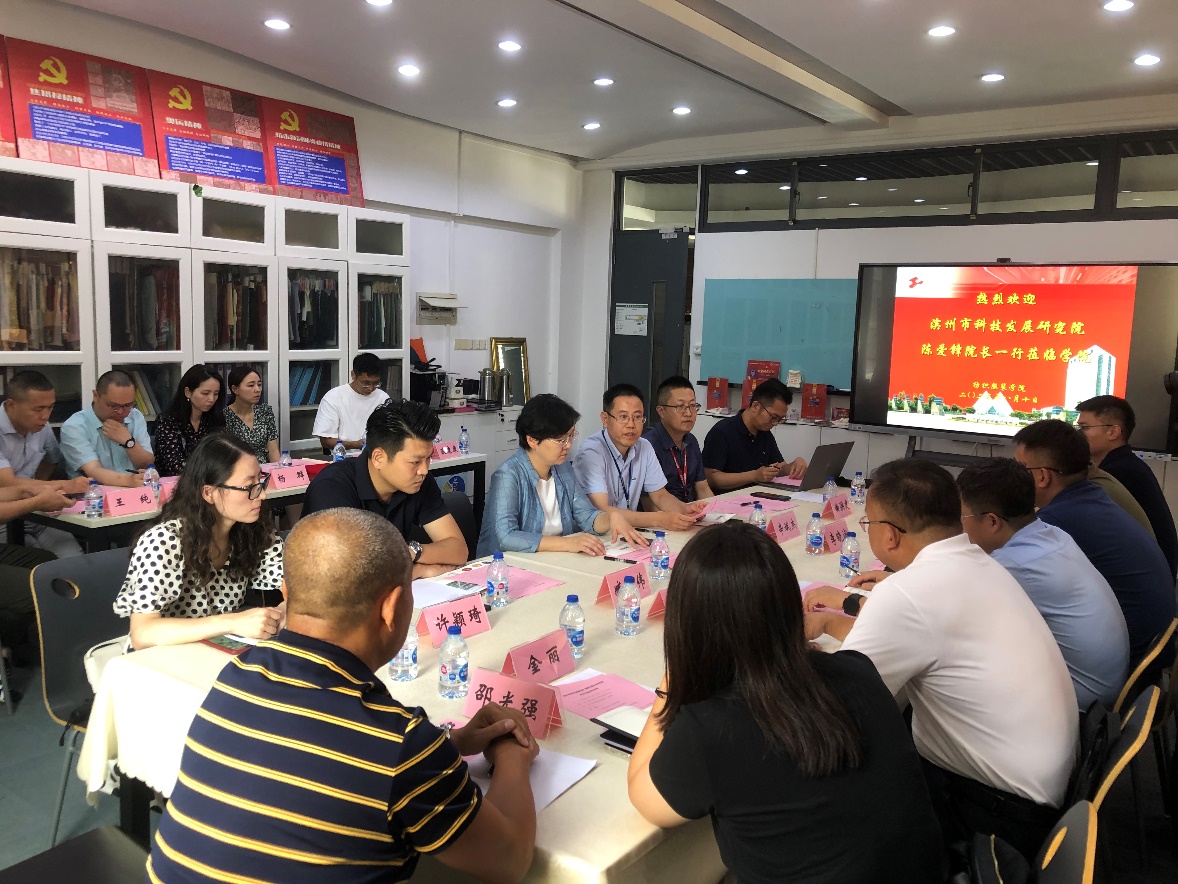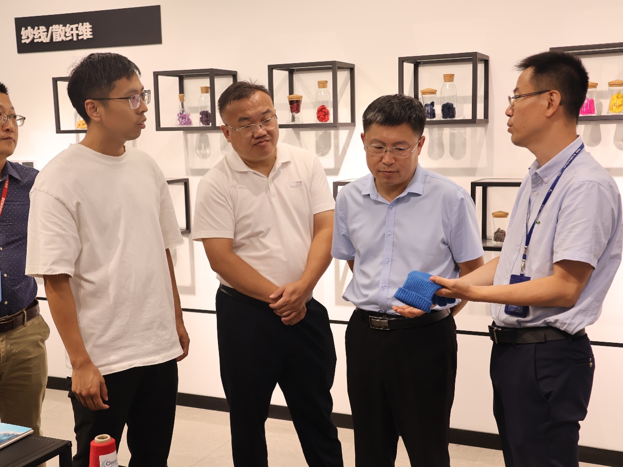 滨州市科技创新发展研究院院长陈爱锋、渤海先进技术研究院有限责任公司副总经理李晓滨先后介绍了滨州科创院和渤海先研院的情况,两位分别对此次来访的目的和重点要讨论的项目进行了介绍。惠民县科学技术局党组书记、局长宓洪江介绍了惠民县纺织产业情况,随后滨州市相关企业分别提出企业发展过程中所面临的技术难题,双方对纺织印染无水染色、纱线低黏高强、家纺面料质量监控、新型绳网产业技术升级等问题展开详细研讨。两院交流团在辛斌杰院长、曲洪建副院长的带领下分别参观我校纺织化学清洁生产工程技术研究中心、纤维材料研究中心以及功能性纺织技术创新中心,与会企业一致认为我院研究方向与企业实际需求能够实现完美匹配,后续将加快推动相关成果的转化落地。