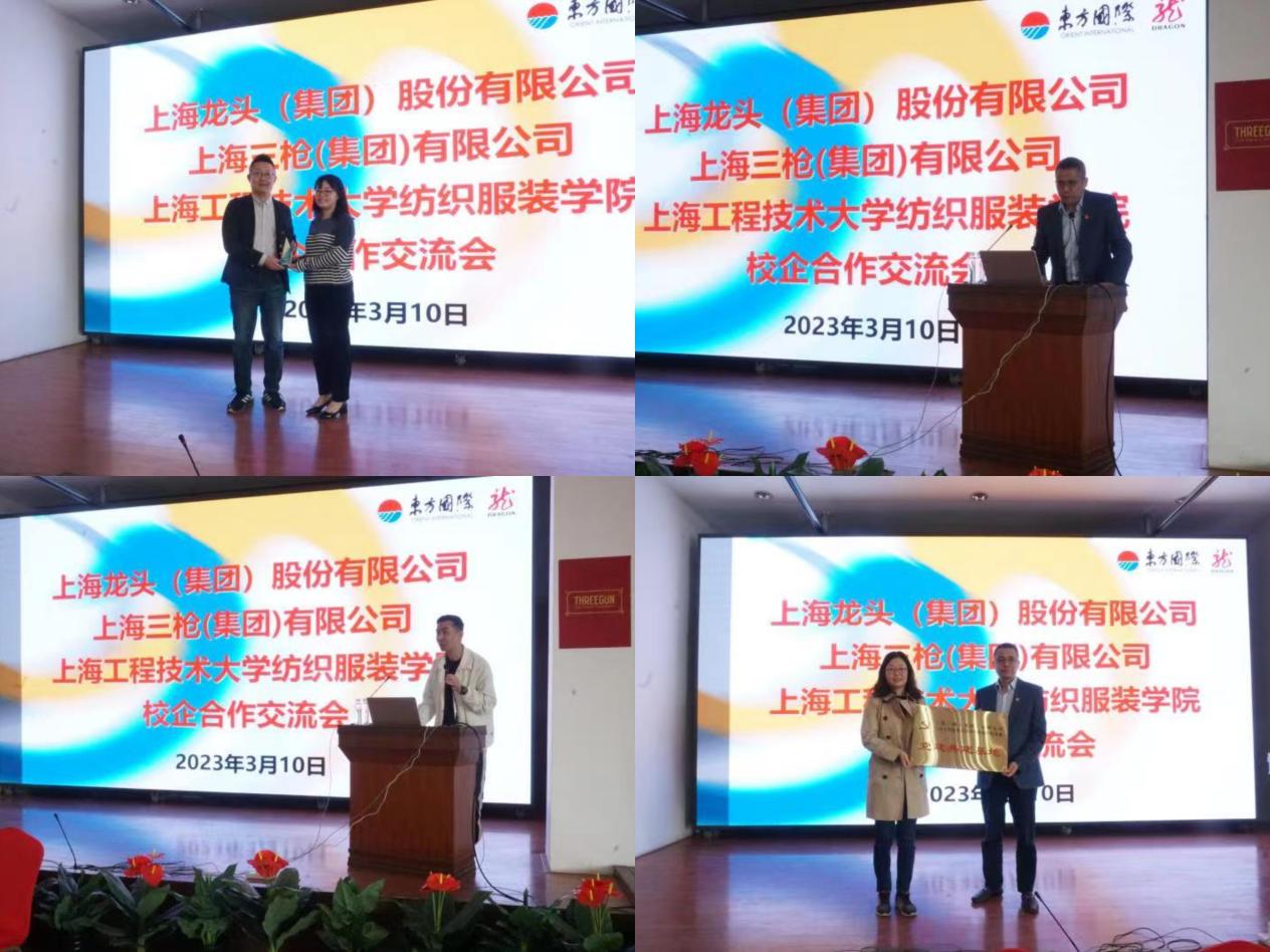 太阳成集团tyc9728党委副书记谢志霞对上海龙头(集团)股份有限公司、上海三枪(集团)有限公司长期以来对学院工作的关心和支持表达最真挚的感谢。她详细介绍了学院的总体情况,指出学院以卓越工程师教育为引领,以现代服装产业发展需求为导向,构筑与行业“四协同”的办学理念,形成了特色鲜明的办学模式和人才培养模式,并希望从专业共建、产业对接、校外指导、就业招聘等方面开展全方位的校企合作,实现共赢。
