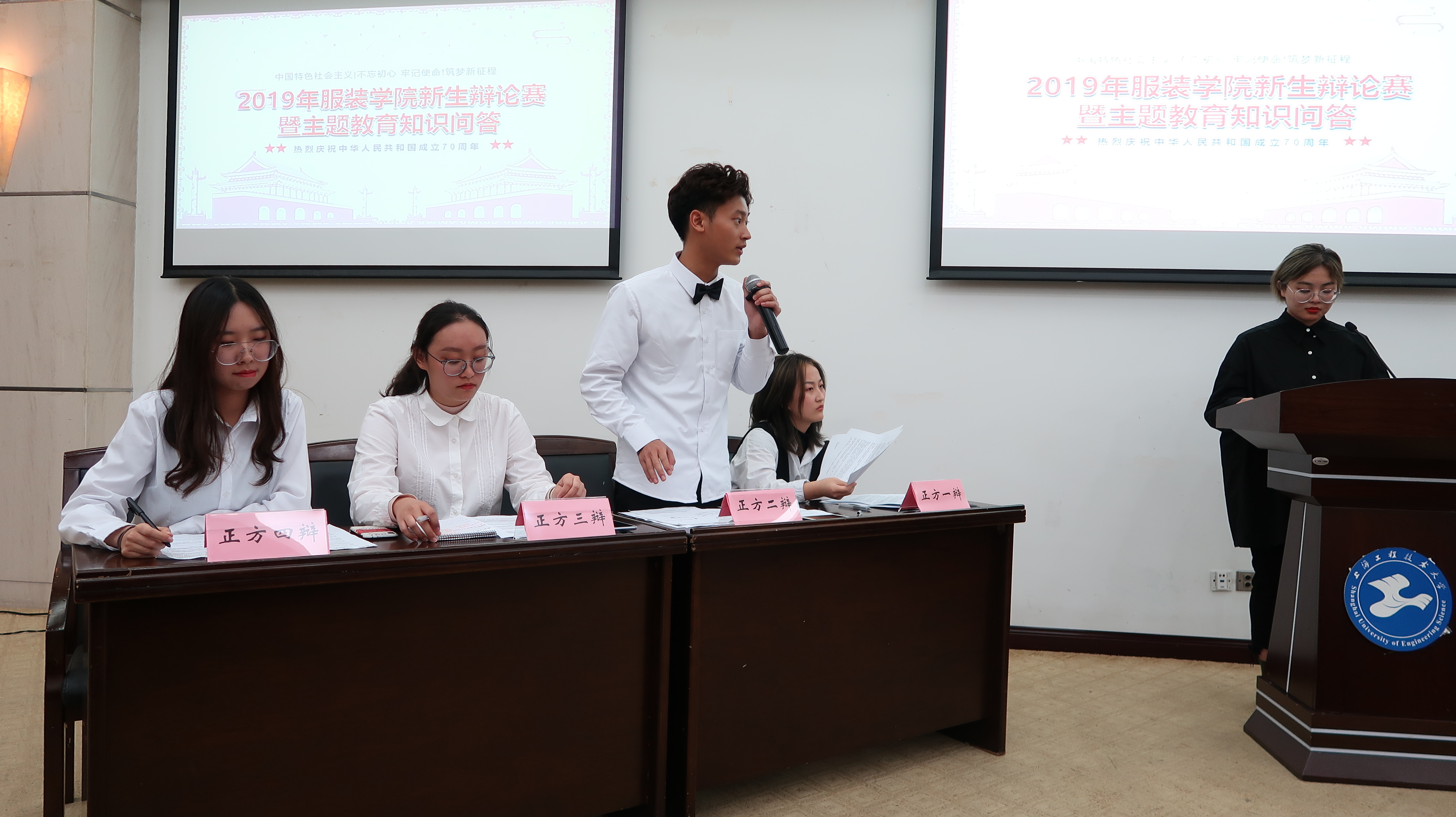 11月27日18:00,9728太阳集团纺织服装学院办公室在图文信息中心第三报告厅举办了“2019年纺织服装学院新生辩论赛决赛暨主题教育知识问答”。