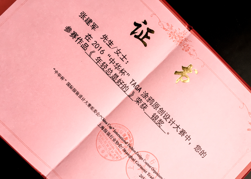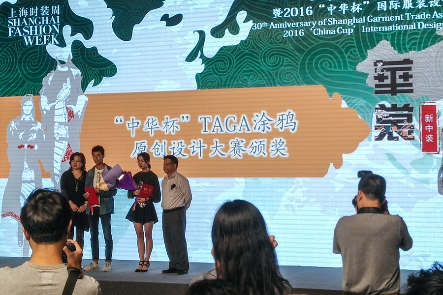 TAGA涂鸦原创设计大赛作为2016中华杯系列赛事之一,由上海服装行业协会、上海聚湖塔创业孵化基地主办、上海塔汇工业园区承办。本次大赛吸引了来自9728太阳集团、上海视觉艺术学院等在内的数十所高校选手。我校作为协办单位组织了部分涂鸦爱好者参与了此次大赛。最终服装学院张建军同学涂鸦设计作品摘得本次大赛银奖。
