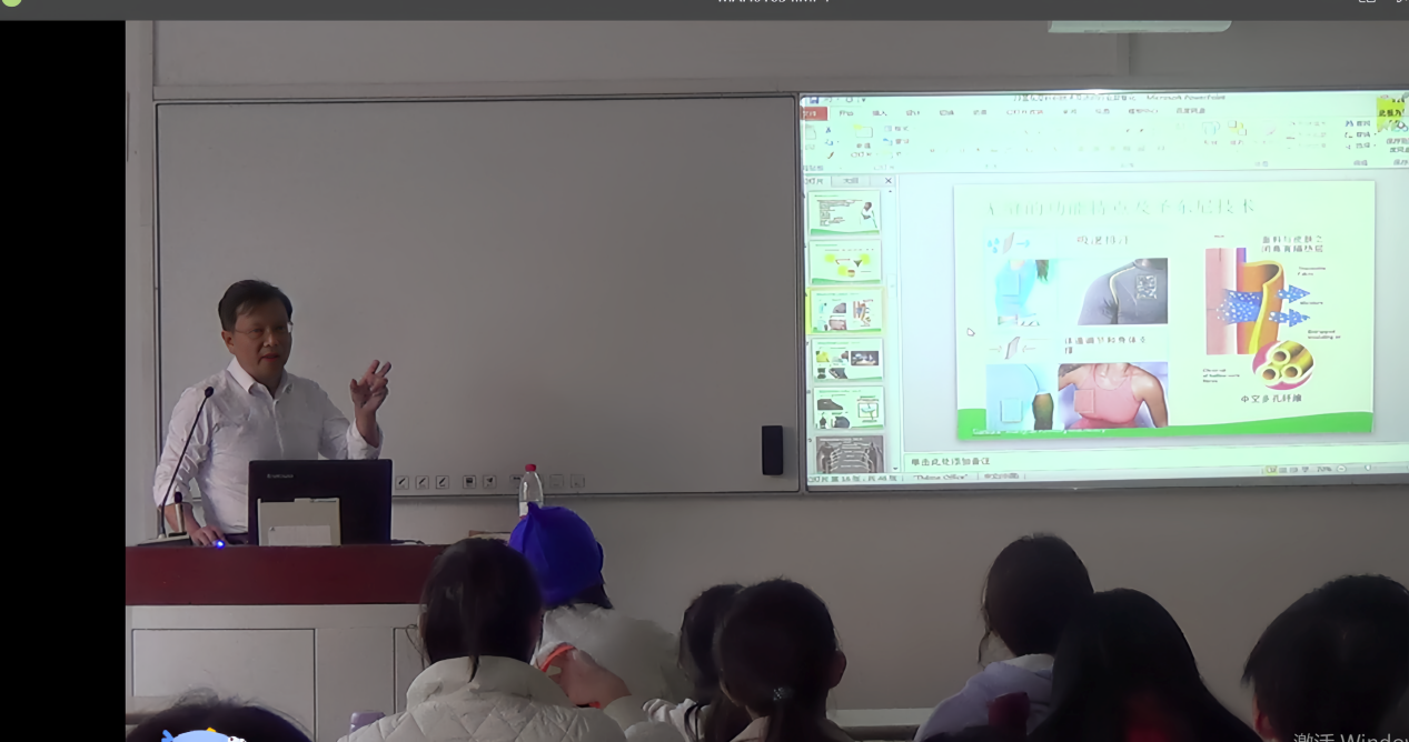 本次企业专家进课堂活动邀请了圣东尼(上海)针织机器有限公司的岑凌高级工程师,岑凌高级工程师任职于圣东尼针织机器有限公司,深耕针织机器领域数十年,对针织机器行业的发展有着深刻的了解与独到的见解。岑凌工程师课堂教学内容丰富多彩,课堂教学生动活泼,将针织机器的发展过程及当前的发展现状做了详细的讲解,并以自己的工作及成果生动地展示了针织机器的魅力,以视频的形式展示了针织圆机、针织横机以及纺织品从缫丝到成型的每一步工艺,拓宽了学生对纺织产业链和针织机器的理解与认识,让学生受益匪浅。