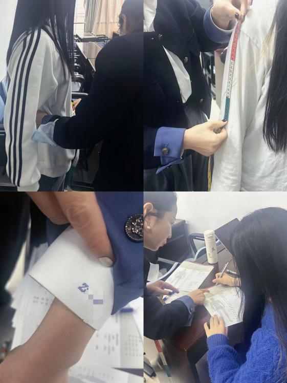 一件衬衫送出一份温暖,一颗爱心带来一份感动。量体师耐心的为同学们量体,努力为同学们做出合适他们的白衬衫。