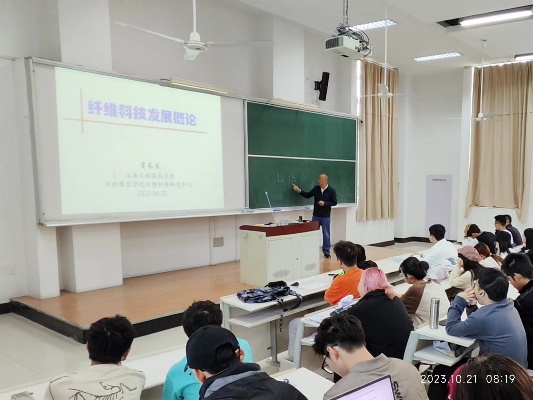 该纺织导论系列课程包含“产业用纺织品”、“非水介质少水/无水染色”、“纤维科技发展概论”、“计算机视觉与人工智能在纺织领域的应用”、“生物医用纺织品”、“纺织结构复合材料”等6个主题讲座以及“上海市纺织化学清洁生产工程技术研究中心”和“9728太阳集团纤维材料研究中心”2个科研基地的参观学习实践环节。