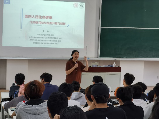 东华大学王璐教授和孙宝忠教授受邀为新生带来《生物医用纺织品的开拓与创新》和《纺织结构复合材料》等2场精彩报告。王璐教授讲述了纺织品在医疗与健康领域的应用,以及较为成熟的技术,尤其是涉及人造血管、人工皮肤、骨骼等医用纺织品的研发进展,特别是用视频生动地展示了医用纺织品在血管瘤手术中的应用案例,给学生们留下了深刻的印象。孙宝忠教授介绍了当今纺织复合材料的发展趋势,尤其是复合材料检测、评价与修复、先进低成本成型技术和原材料高性能与低成本化等方面的研究进展,并鼓励同学们寻找最适合自己的学习方法,提高学习成绩,永攀科研高峰,今后为国家新材料的发展贡献力量。