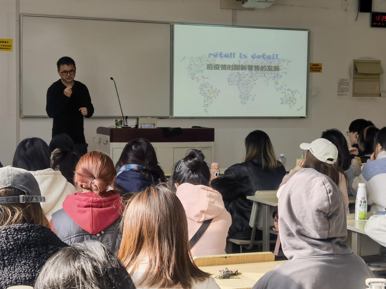 MUMUSO(木槿生活)隶属于上海木木生活贸易有限公司,作为本土快时尚品牌已进驻全球50多个国家,开设800多家零售店铺,目前已发展成为全球时尚休闲百货贸易公司。陈归常总监凭借深厚的行业背景和丰富的品牌运营经验,和同学们分享了疫情后的消费特点、新零售趋势发展趋势,结合企业真实案例,阐释了品牌运营模组,并在此基础上,以商业项目化的形式,让同学们分小组开展了快速融入零售企业的项目化模拟,同学们兴致盎然,课堂气氛热烈,讲座持续了3个多小时。