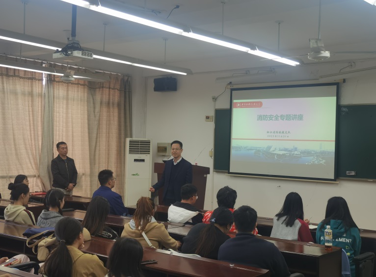 邹教官就火灾种类、预防措施、应急处置、消防设施使用等消防基本常识进行了细致、详尽地讲授,结合近期消防事件进行了生动的案例指导,并通过生动有趣的宣传片展示,增进师生对消防安全的理性认识,帮助师生更好地应对火情,当火情发生时,能够迅速作出反应,提高应急能力,掌握火场逃生和自救技能,采取正确的措施保护自己和他人的安全。王镇老师、辛斌杰老师就校园学生公寓、教学楼、图书馆、实验室、食堂等重点区域消防安全注意事项进行了重点提示和强调,为师生敲响消防安全警钟。