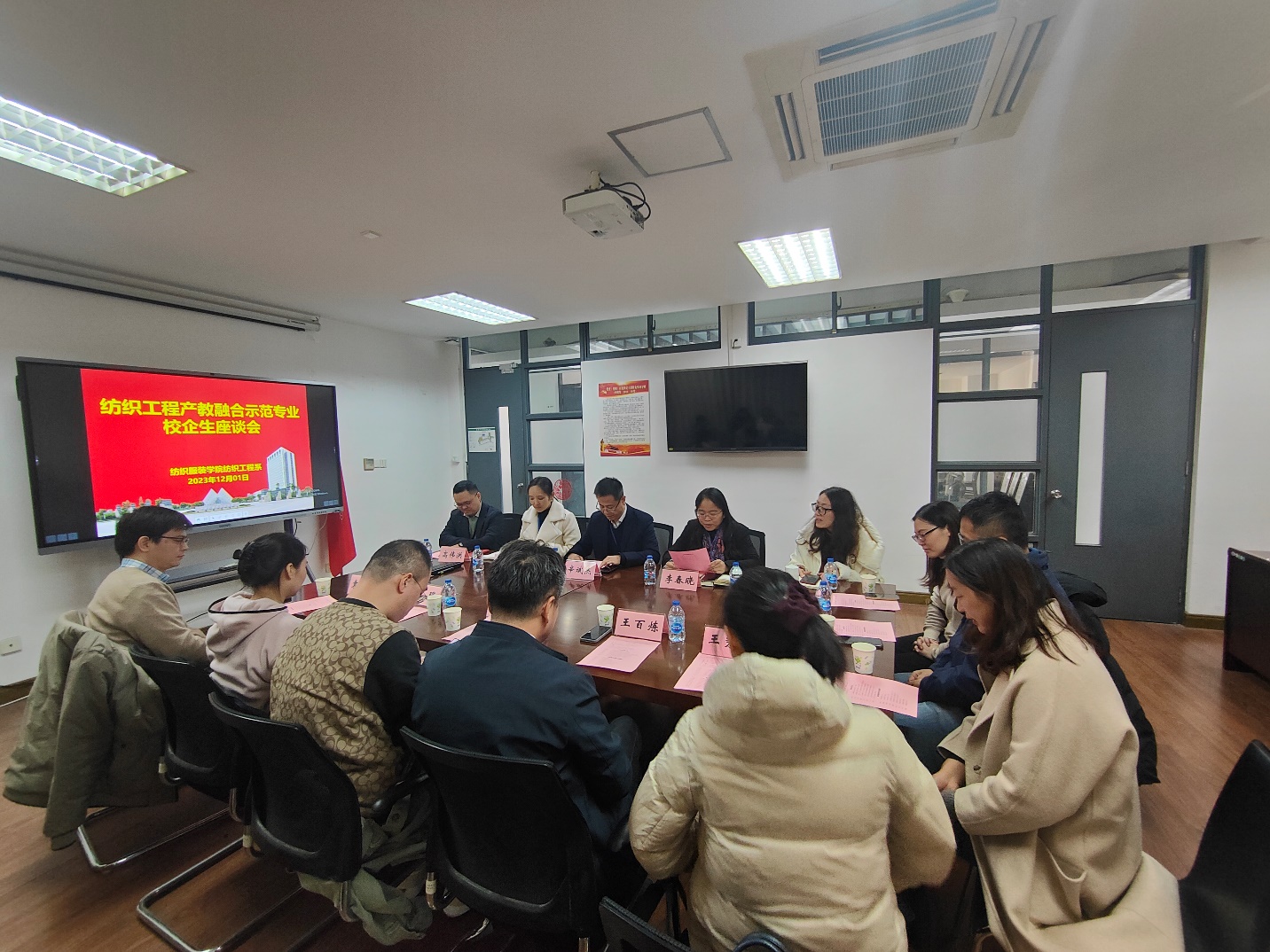 为推进产教融合示范专业建设,总结合作教育校外实践教学成果,提高人才培养质量,12月1日下午,太阳成集团tyc9728在艺术楼A218举办纺织工程产教融合示范专业建设校企生座谈会。太阳成集团tyc9728院长辛斌杰、副院长李春晓、工会主席许颖琦、纺织工程系主任郑元生、副主任高伟洪、杨群、学院教师代表刘玮教授、陆赞副教授、李庭晓老师及合作教育实习学生代表参会。学院邀请到上海博格工业用布有限公司人事部长王秀娟、上海嘉麟杰纺织科技有限公司总工程师王俊丽、圣东尼(上海)针织机器有限公司战略与公共事务副总裁王百炼、广检检测技术(上海)有限公司技术质保部部长李储林、上海海关工业品与原材料检测技术中心研究员袁志磊、上海纺织集团检测标准有限公司检测部部长朱庆芳、上海天祥质量技术服务有限公司人事专员叶琛及ZAVATE APPAREL总经理胡腾飞等8名合作教育实习企业代表参会。会议由副院长李春晓主持。