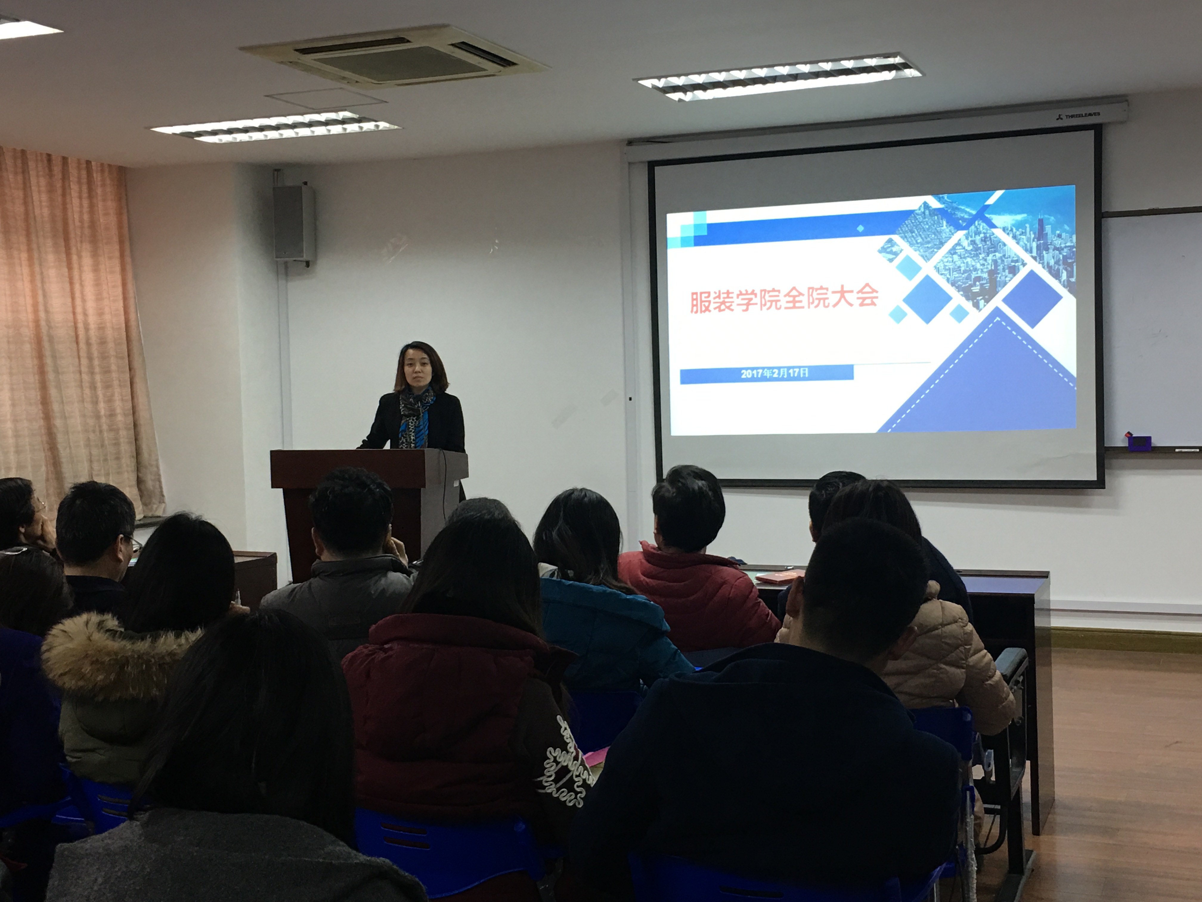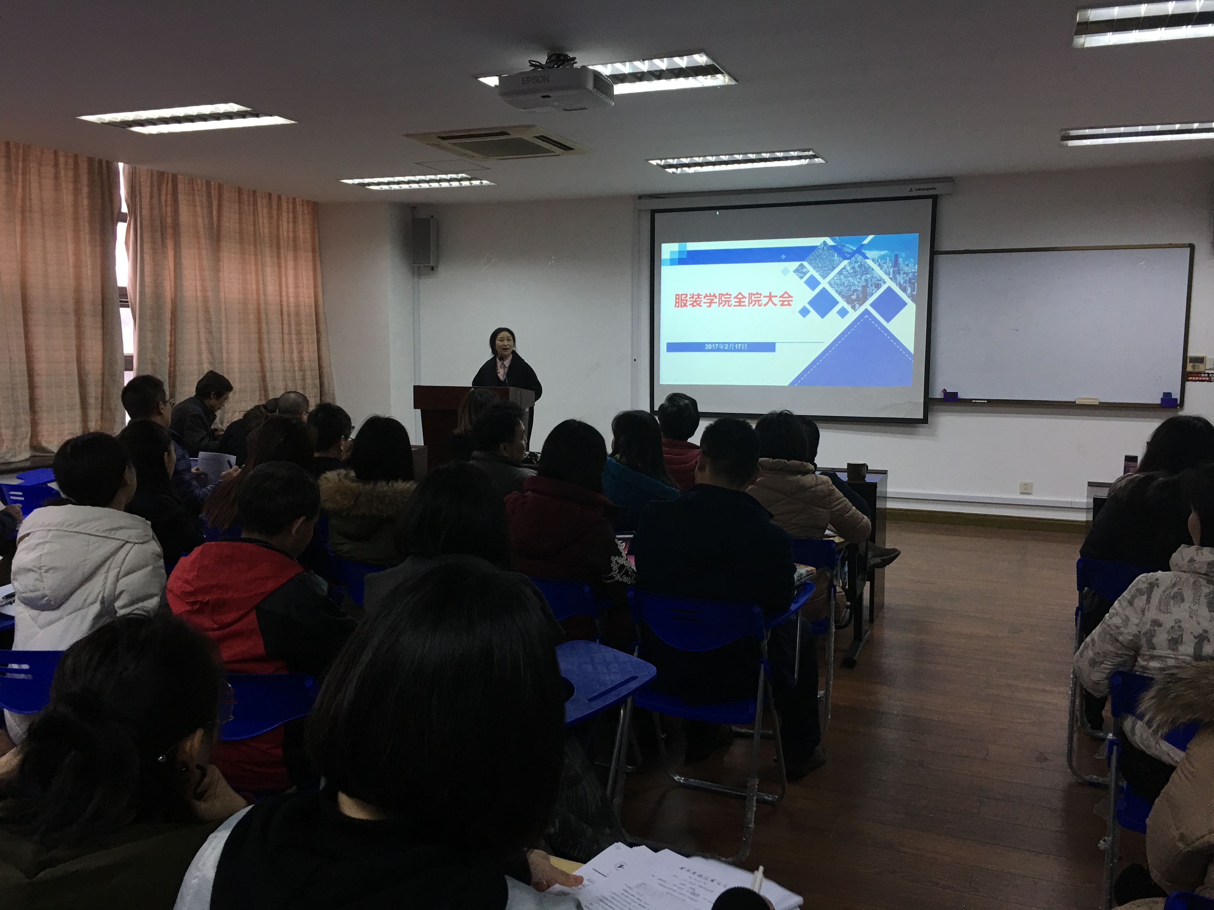 2月17日下午1:30服装学院在艺术楼A215召开新学期全院大会,学院党政班子和全体教职工参加会议。