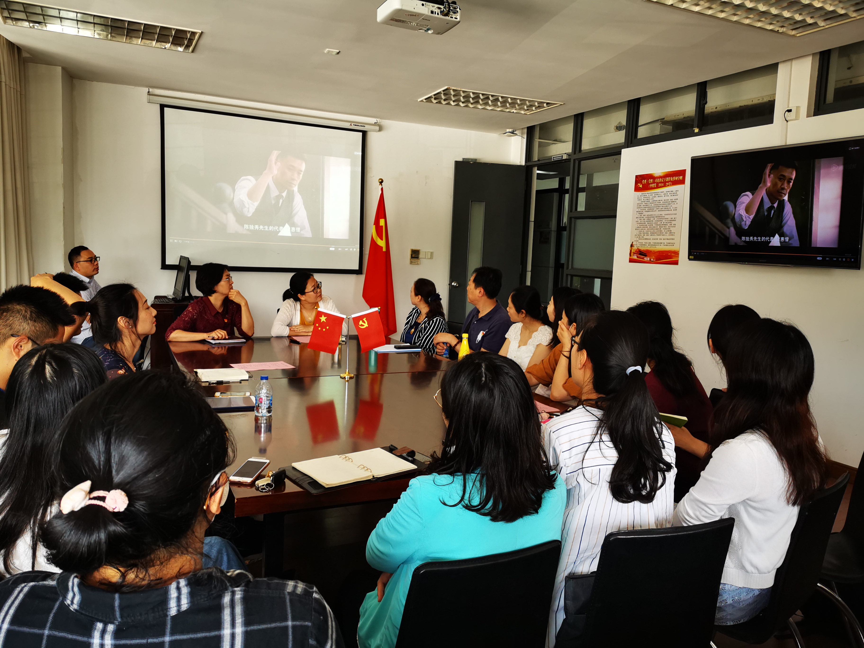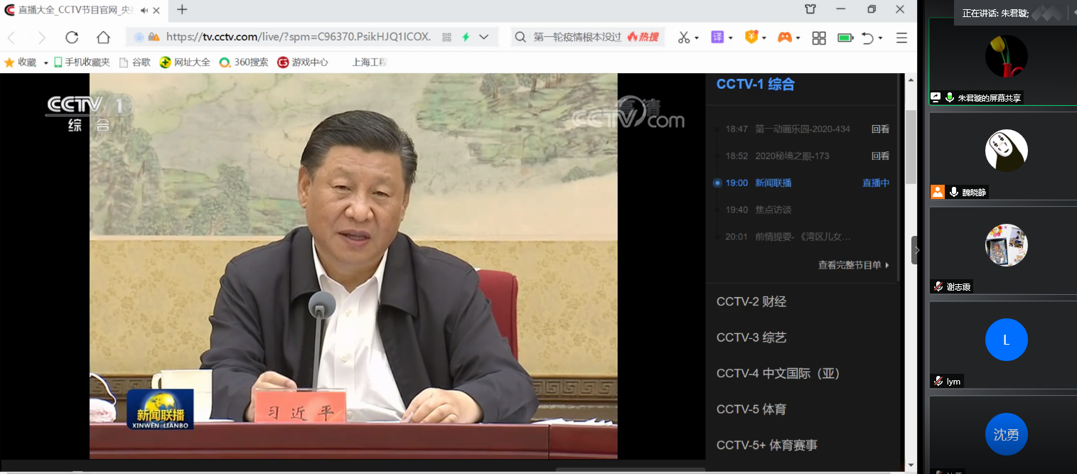 6月30日晚,党政班子成员、各个支部党团员集体观看《新闻联播》,热议总书记给复旦大学《共产党宣言》展示馆党员志愿服务队全体队员的回信精神,坚决拥护党中央的决定,希望香港长治久安、繁荣稳定。教工党员徐丽慧认为“坚定初心使命,忠诚于党的信仰,将政治理论学习与教学、科研紧密结合,深入加强理论知识在工作中的实际应用,为党育人、为国育才”才能做到“心有所信,方能行远”;青年团员翟雨桑表示“随着“四史”学习的深入,越来越感悟到党组织的先进性、伟大性,听了总书记的话语,令我想更进一步的接近它,成为党组织的一份子,成为一名光荣且具有使命感的党员”。