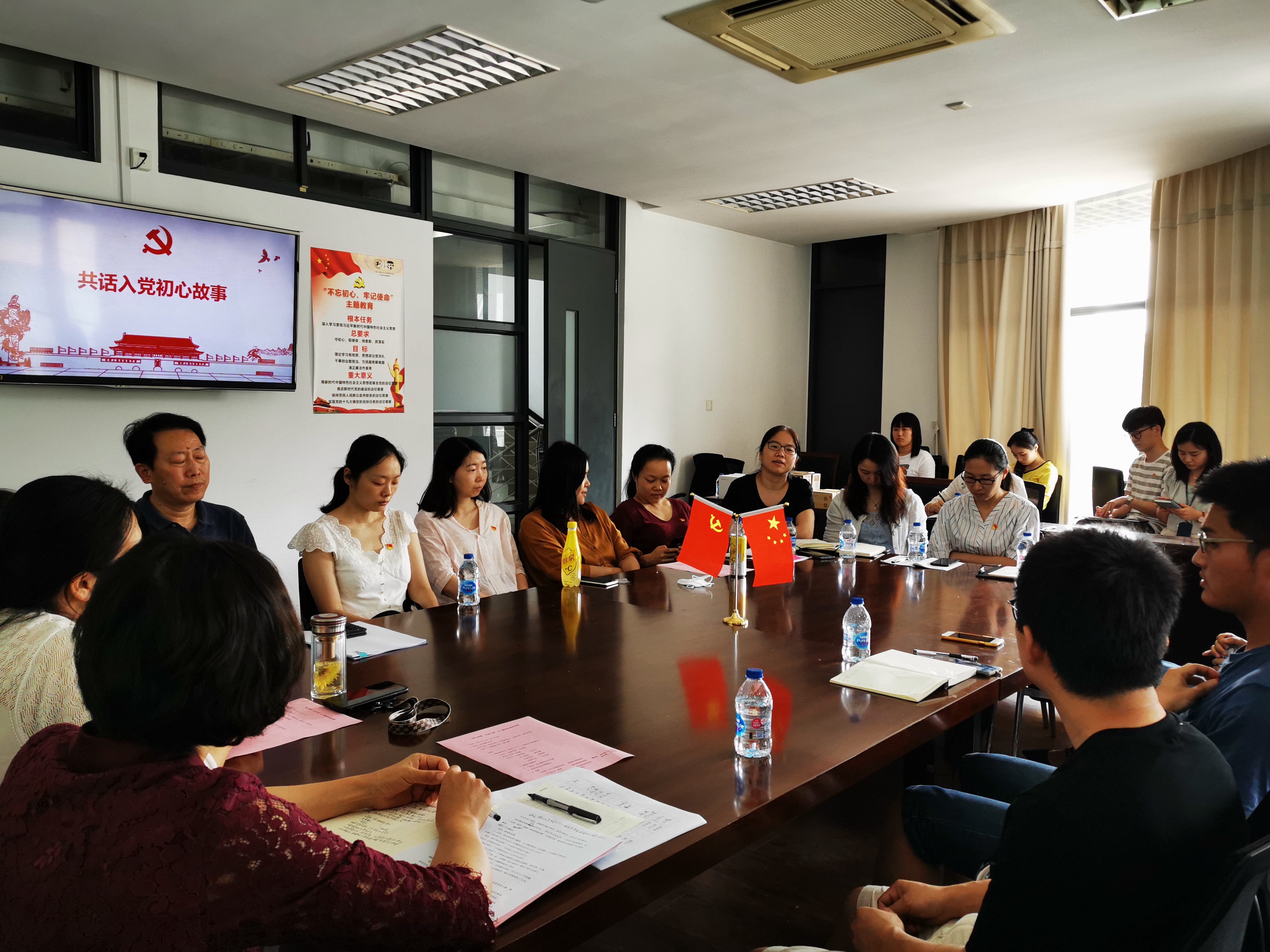 7月1日下午1点,学院党委组织教师党员、发展对象开展“初心故事·共话入党”座谈会。座谈会伊始,全体与会人员进行党史党课学习,在支部书记王安浩同志的讲述下,共同学习回顾党的诞生史。随后,发展对象闫兰兰同志分享了自己在武汉的生活见闻和感悟,党和国家付诸的努力、基层党员的作为让她越发坚定入党的决心;“学习强国”学习进步先锋胡文锋同志分享了自己入党的心路历程,以及工作学习中对初心使命的担当作为;新生代支部书记孙光武分享了自己是如何一步步加深对党的认识,并在实践中坚定理想信念,在支部工作中加深服务意识;“双带头人”支部书记李春晓同志讲述了自己作为一名党员的成长故事,被陌生的保安认可“你一定是党员吧”,并分享了作为支部书记的工作经验和体会。忆初心之后,在已有33年党龄的老党员周晓鸣同志代领下,全体党员重温入党誓词,强化使命担当责任感。为了检验近期“四史”学习教育效果,还开展了激烈的“四史”学习教育知识竞赛,经过抢答和必答环节后党委对获胜者以及“学习强国”学习标兵们共同进行了表彰和激励。党委书记朱君璇同志在讲话中肯定了党员们的学习热情,对“四史”学习教育提出进一步要求,并勉励各级党组织、党员奋发有为,发挥作用。