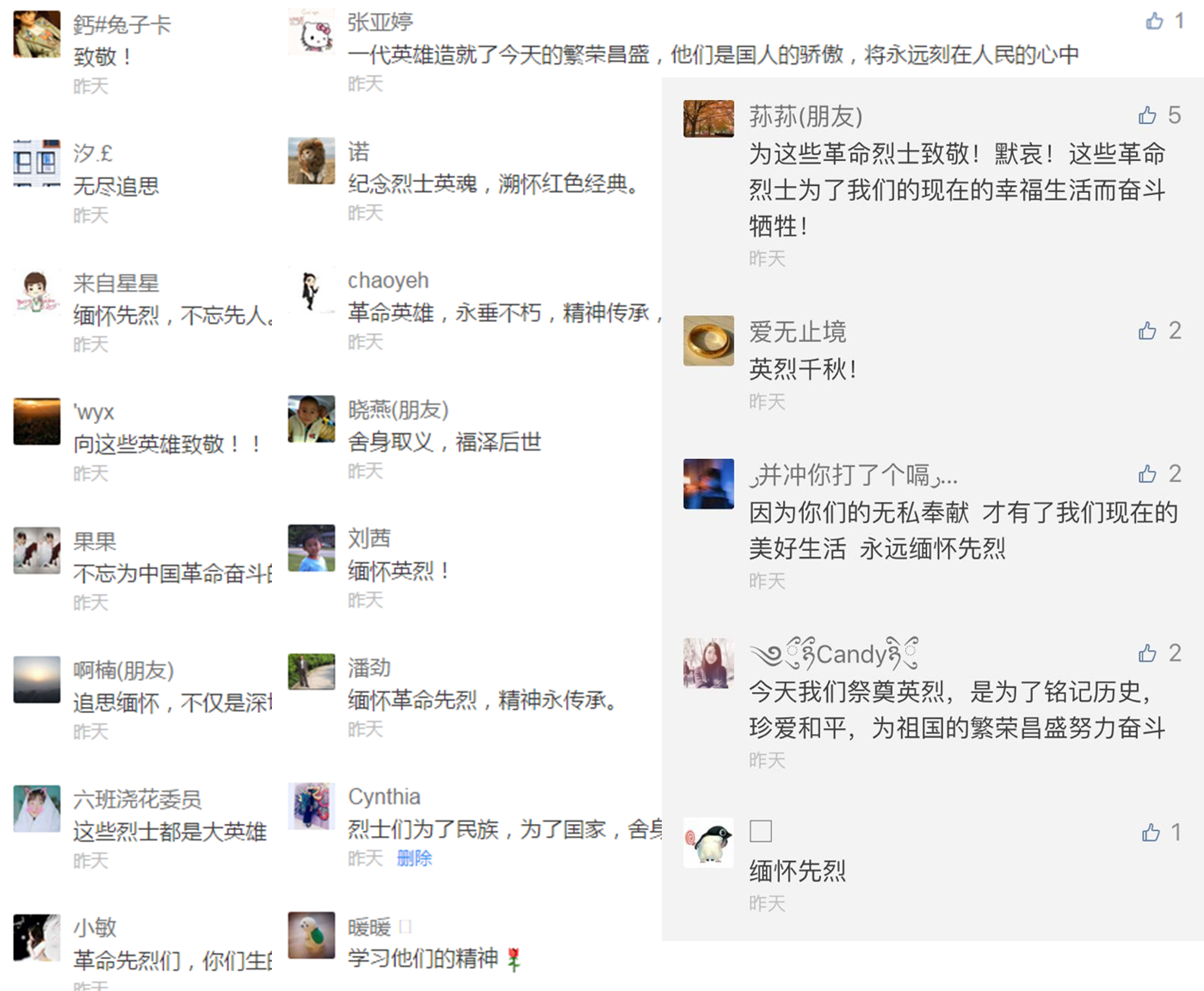 “为这些革命烈士致敬!默哀!这些革命烈士为了我们的现在的幸福生活而奋斗牺牲!”“缅怀先烈,英雄们的精神永存!”“革命英雄,永垂不朽,精神传承,永不停歇”留言寄语区内,师生们争相留下自己的感言体会,表达敬仰和哀思,同时提醒自己继承先烈遗志、传承红色基因、弘扬优良传统。