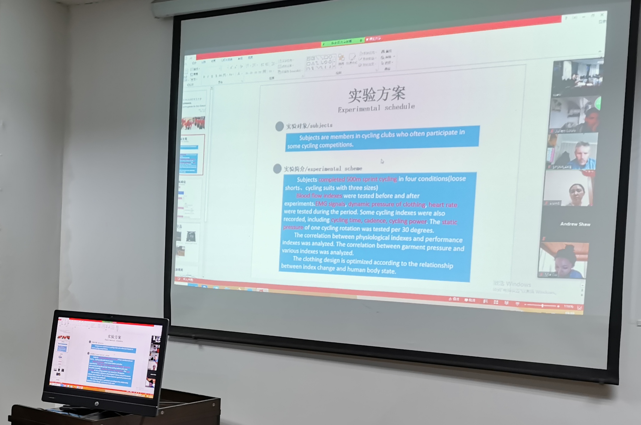 随后,我院五位联合培养的研究生汇报了关于功能运动服装开发与检测,柔性传感器应用,远红外织物与运动疲劳等方面的研究进展,得到了三位利物浦约翰摩尔大学专家的好评,并就学生目前存在的一些问题给出了宝贵的建议。