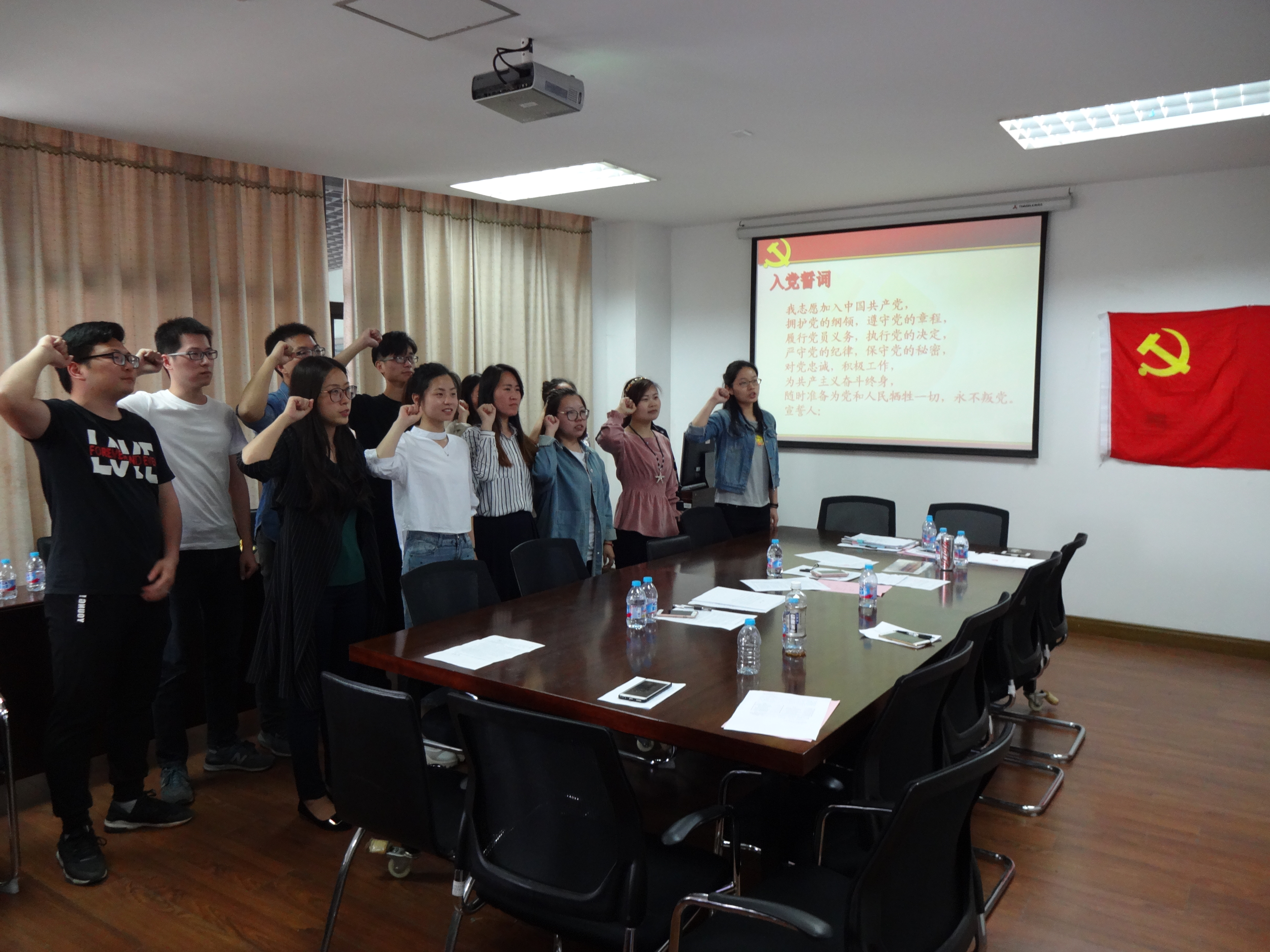 最后,全体毕业生党员重温入党誓词,通过行动进一步强化党员意识,增强组织观念。党员们纷纷表示将一如既往高标准、严要求对待自己,永葆党员先进本色,在今后的工作岗位上发挥模范作用,时刻牢记母校的培育之恩!